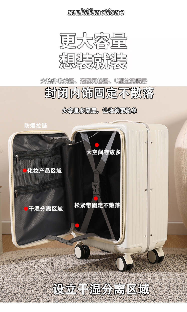 새로운 전면 오픈 가방 20inch 경량 탑승 PC 트롤리 케이스 학생 비밀번호 범용 휠 가방스토어 가기