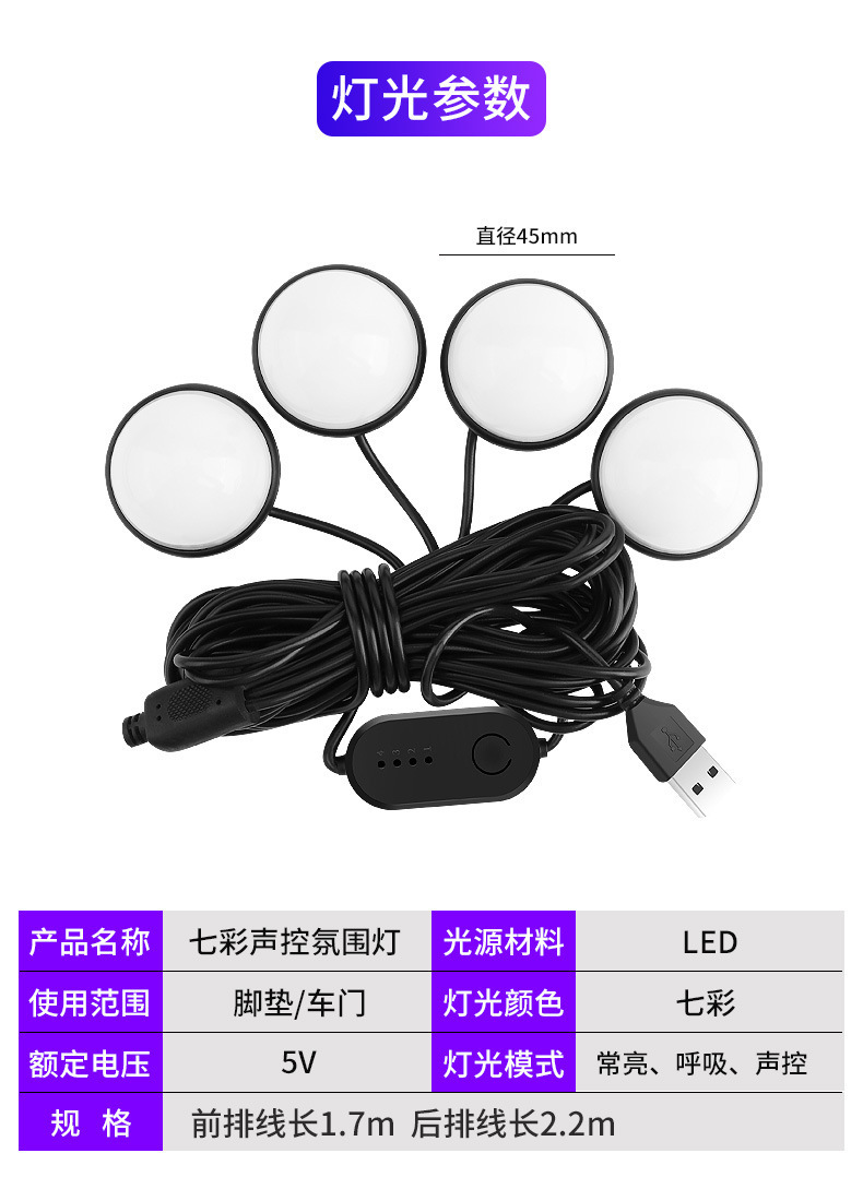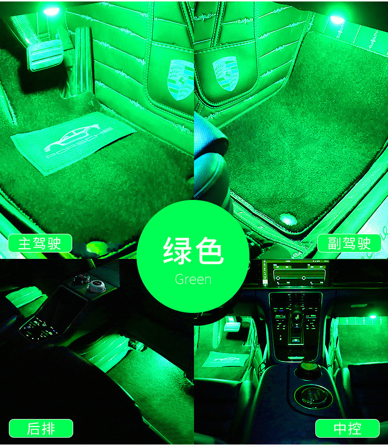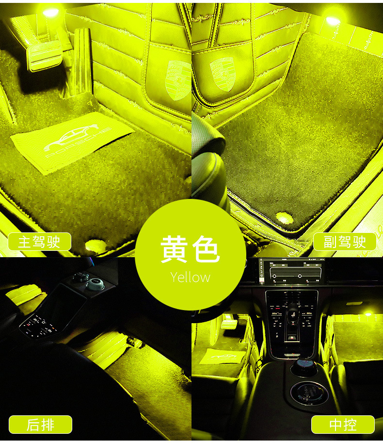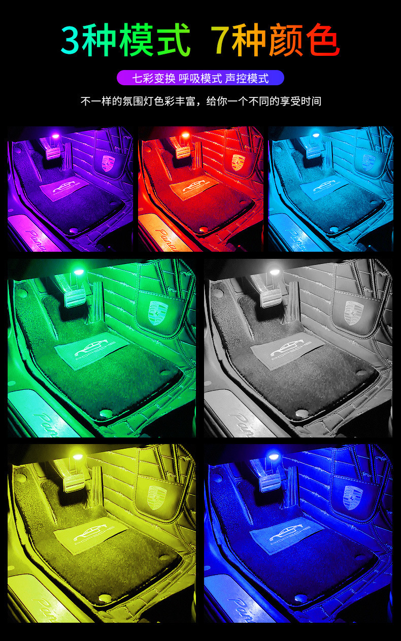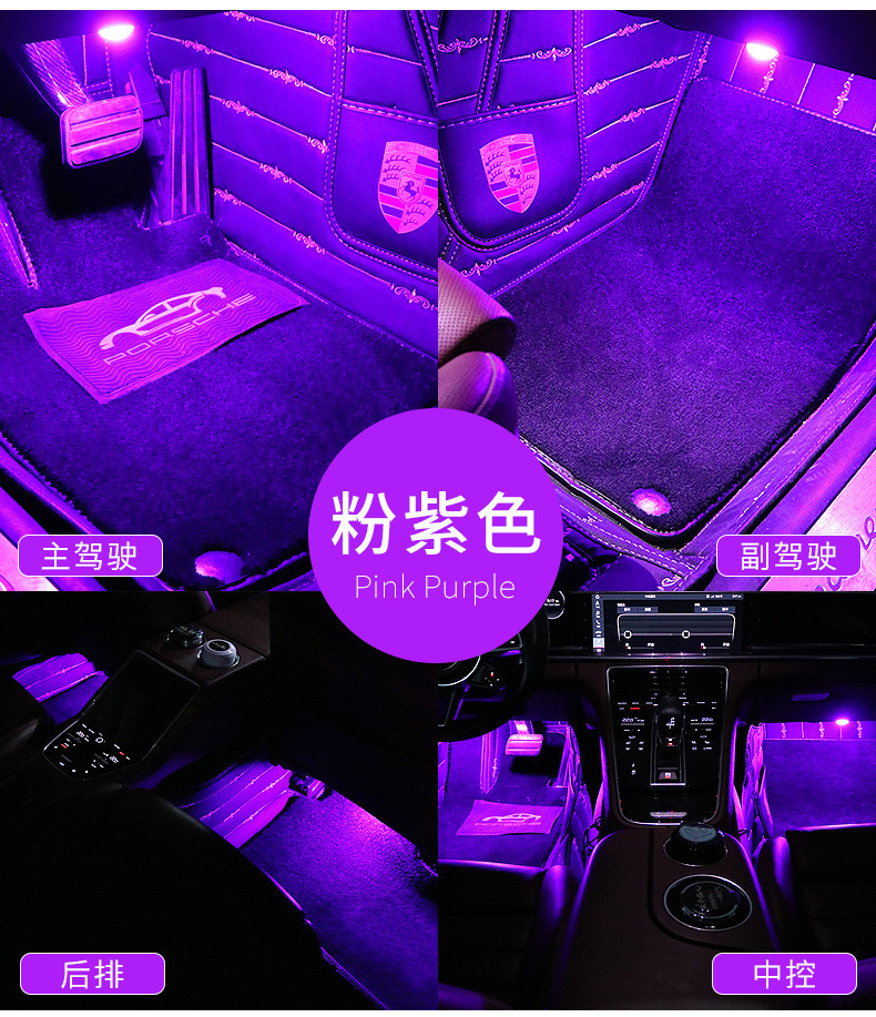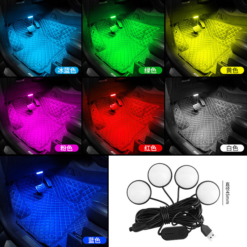 자동차 분위기 조명, 1-4 발 조명, 배선이 필요 없는 분위기 조명, RGB 다채로운 조절 가능한 색상 변경 장식 범용 조명