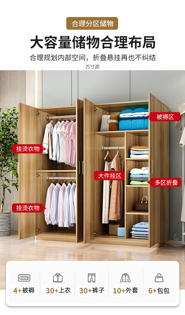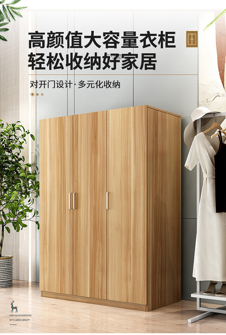 옷장 임대 주택 가정용 침실 3 도어 조립 옷장 내구성 단일 옷장 단단한 나무 보관 캐비닛 공급망스토어 가기