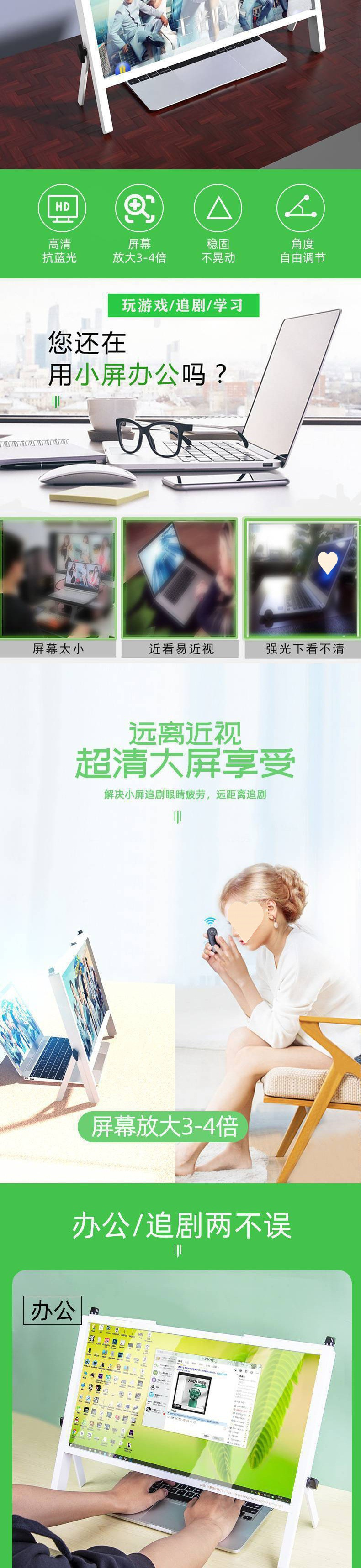 노트북 화면 증폭기, 매우 선명한 확대 스탠드, 데스크탑 높이 조절, 편리한 접이식 루스스토어 가기