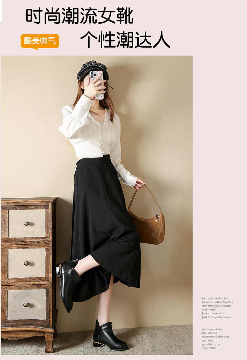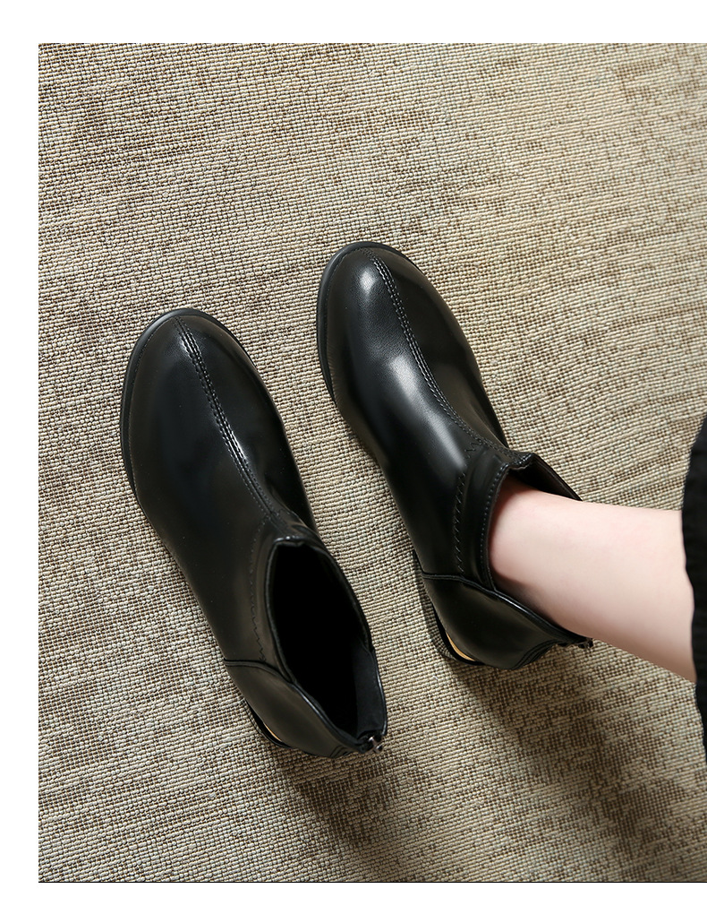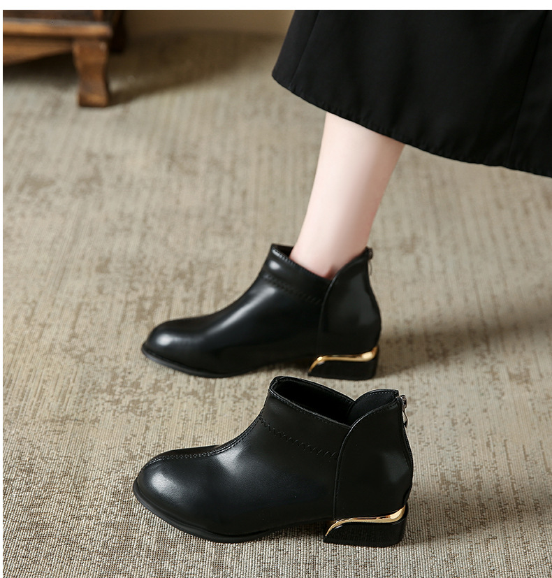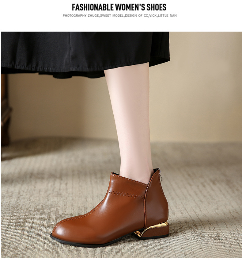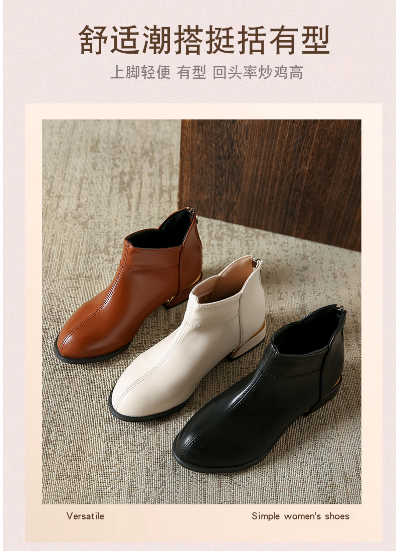 플러스 사이즈 짧은 부츠 2025 가을 겨울 새로운 유럽과 미국의 라운드 발가락 낮은 굽 마틴 부츠 뒤 지퍼 패션 여성 가죽 부츠스토어 가기