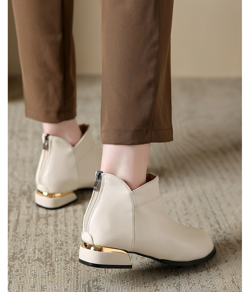 플러스 사이즈 짧은 부츠 2025 가을 겨울 새로운 유럽과 미국의 라운드 발가락 낮은 굽 마틴 부츠 뒤 지퍼 패션 여성 가죽 부츠