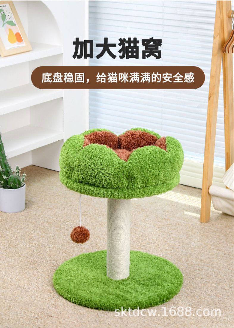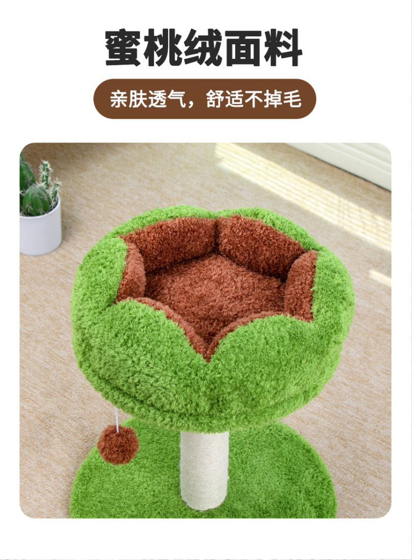 고양이 클라이밍 프레임과 고양이 둥지가 하나로 통합되어 공간을 절약하고 고급스러운 녹색 꽃, 얼룩 방지 고양이 공, 고양이 용품 및 애완 동물 용품