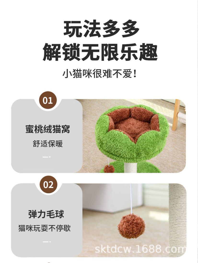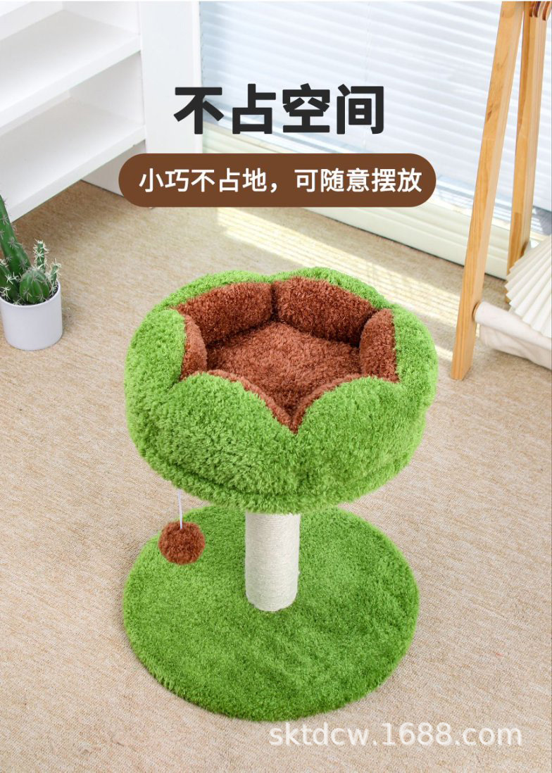고양이 클라이밍 프레임과 고양이 둥지가 하나로 통합되어 공간을 절약하고 고급스러운 녹색 꽃, 얼룩 방지 고양이 공, 고양이 용품 및 애완 동물 용품스토어 가기