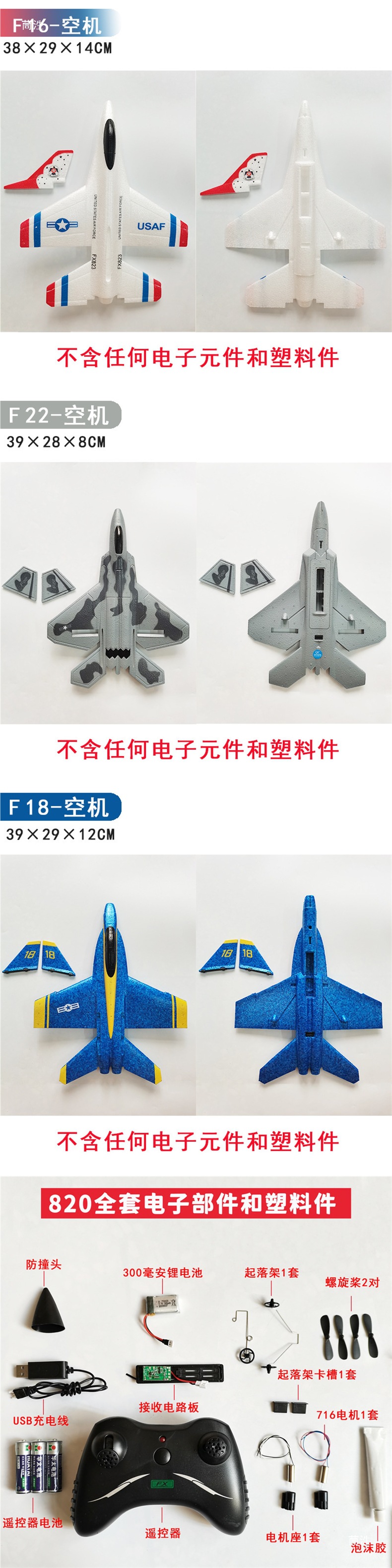 FX820 Su 35F22 거품 비행기 DIY 자체 조립 및 수정 고정 날개 원격 제어 비행기 글라이더 액세서리