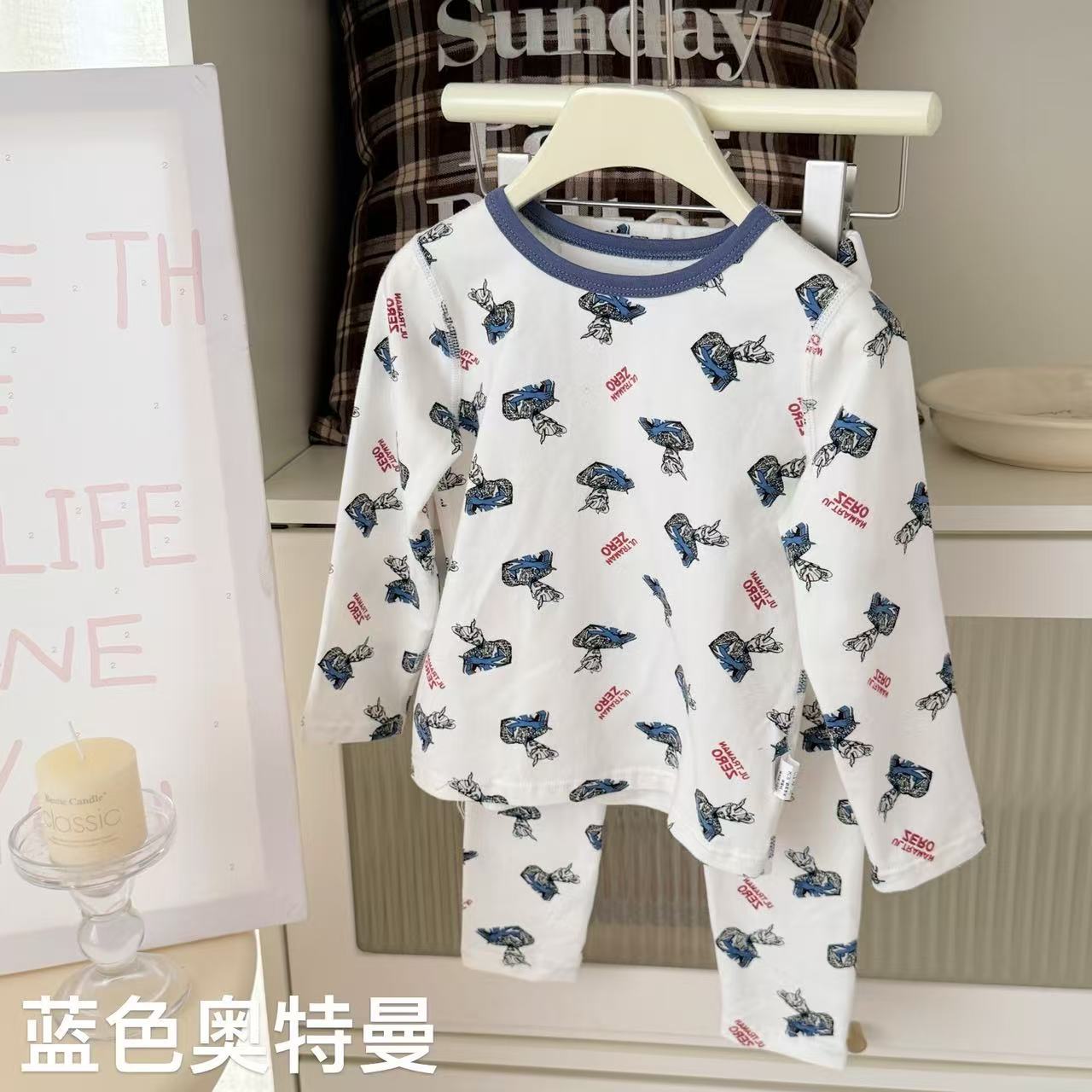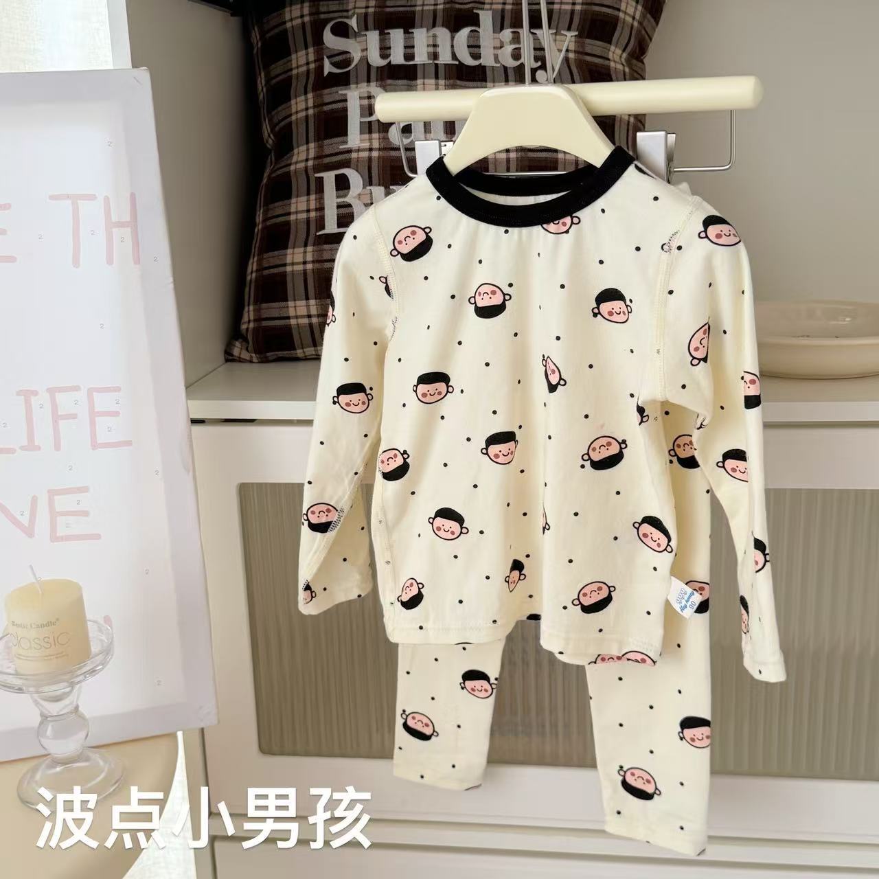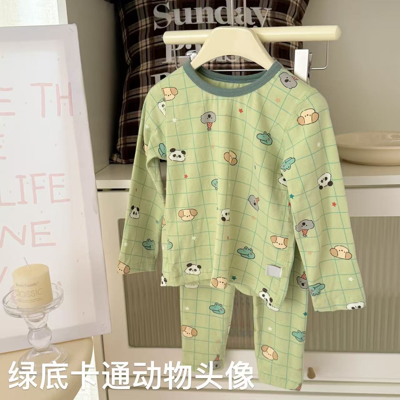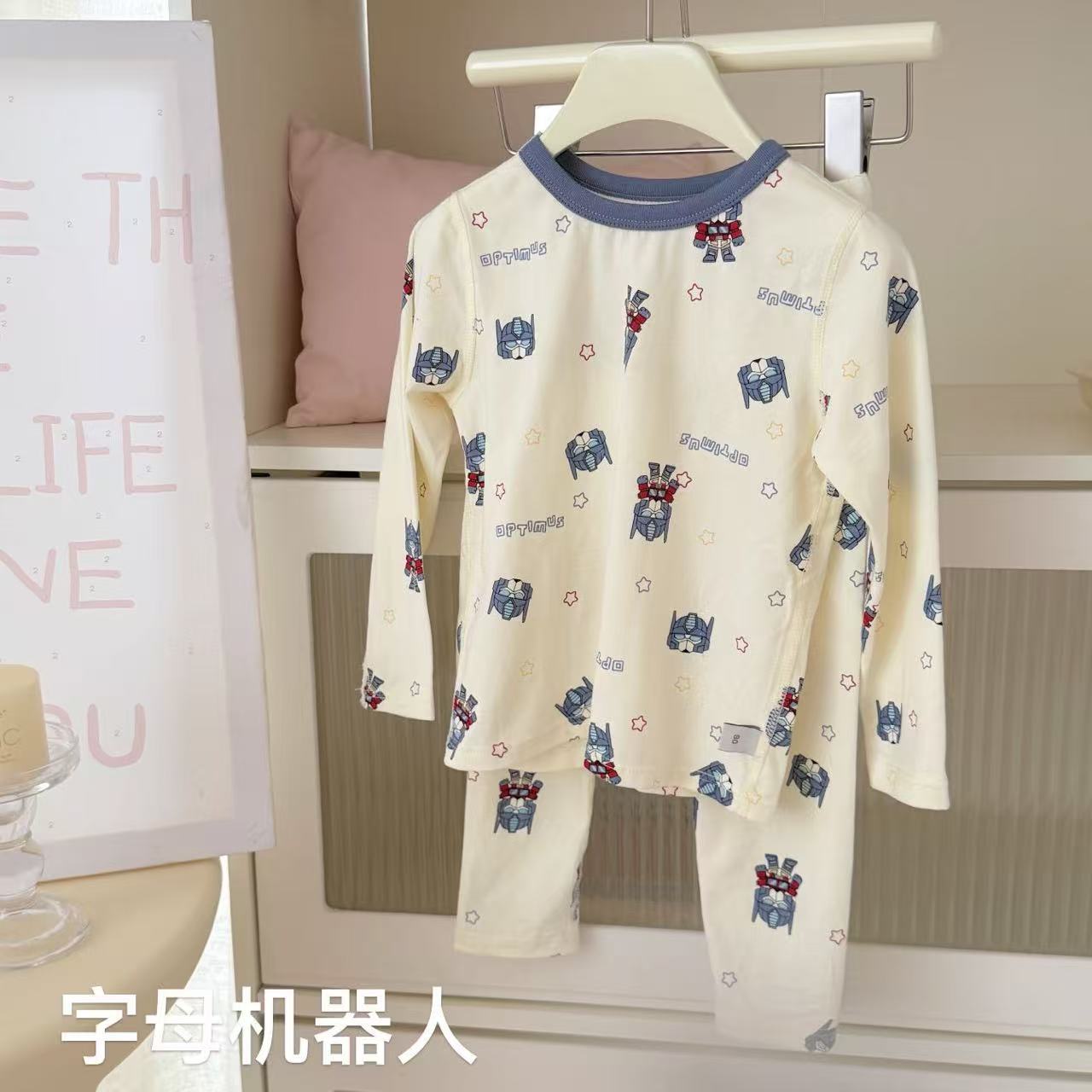 어린이 잠옷 A급 순면 가을옷 상의 남아 여아 라이크라 면 무봉제 가을옷 세트 대형 소형 H 아동복