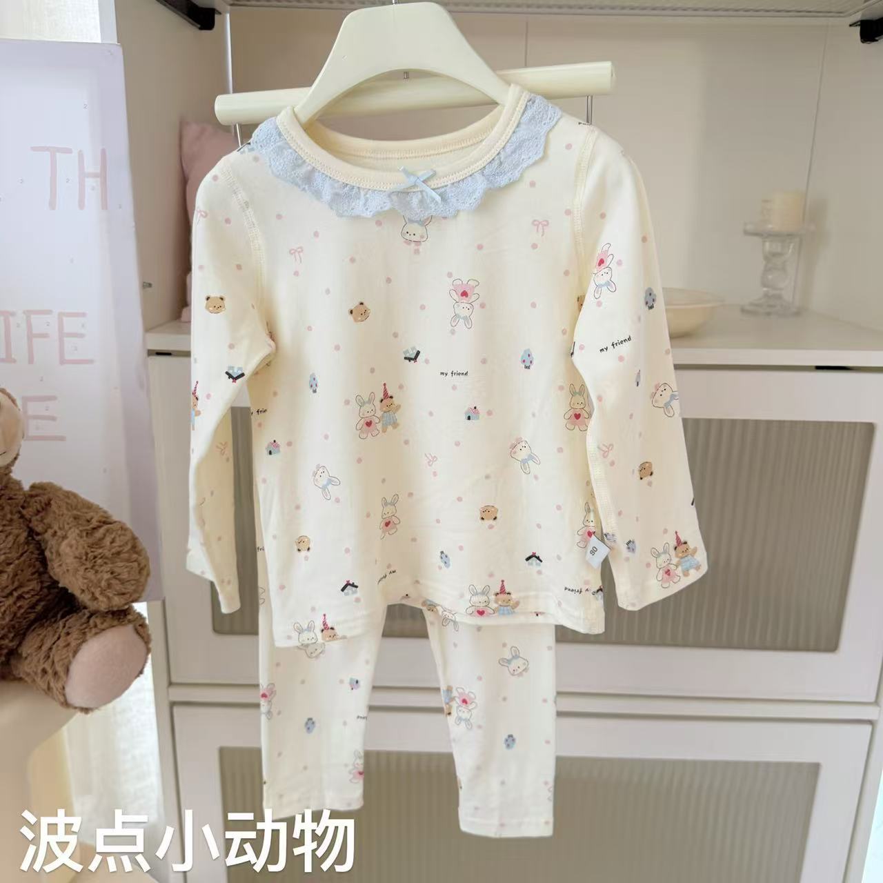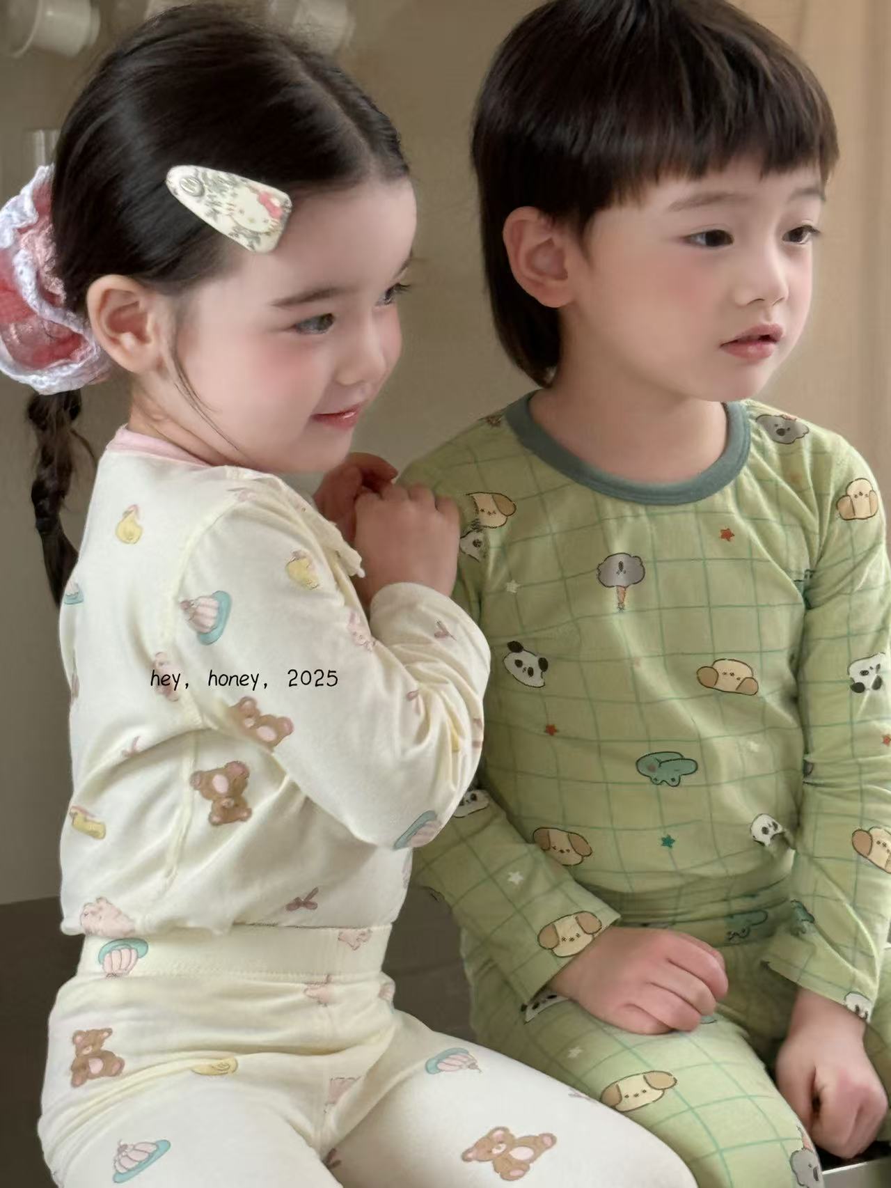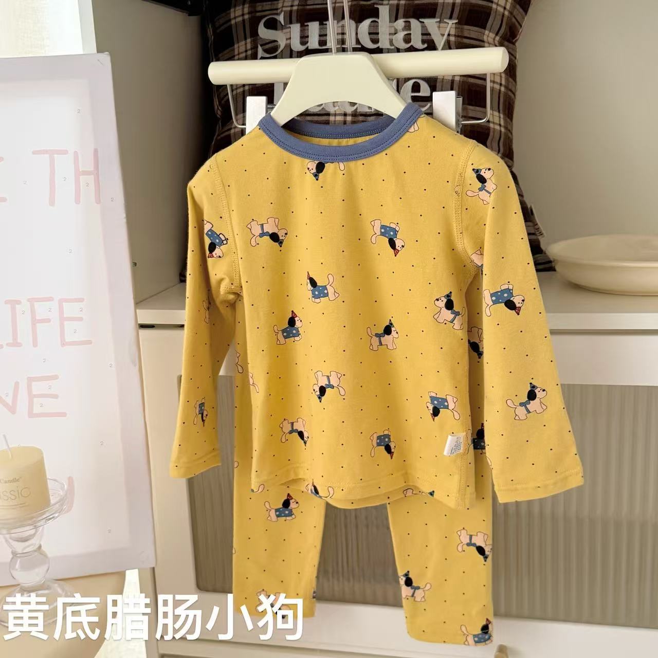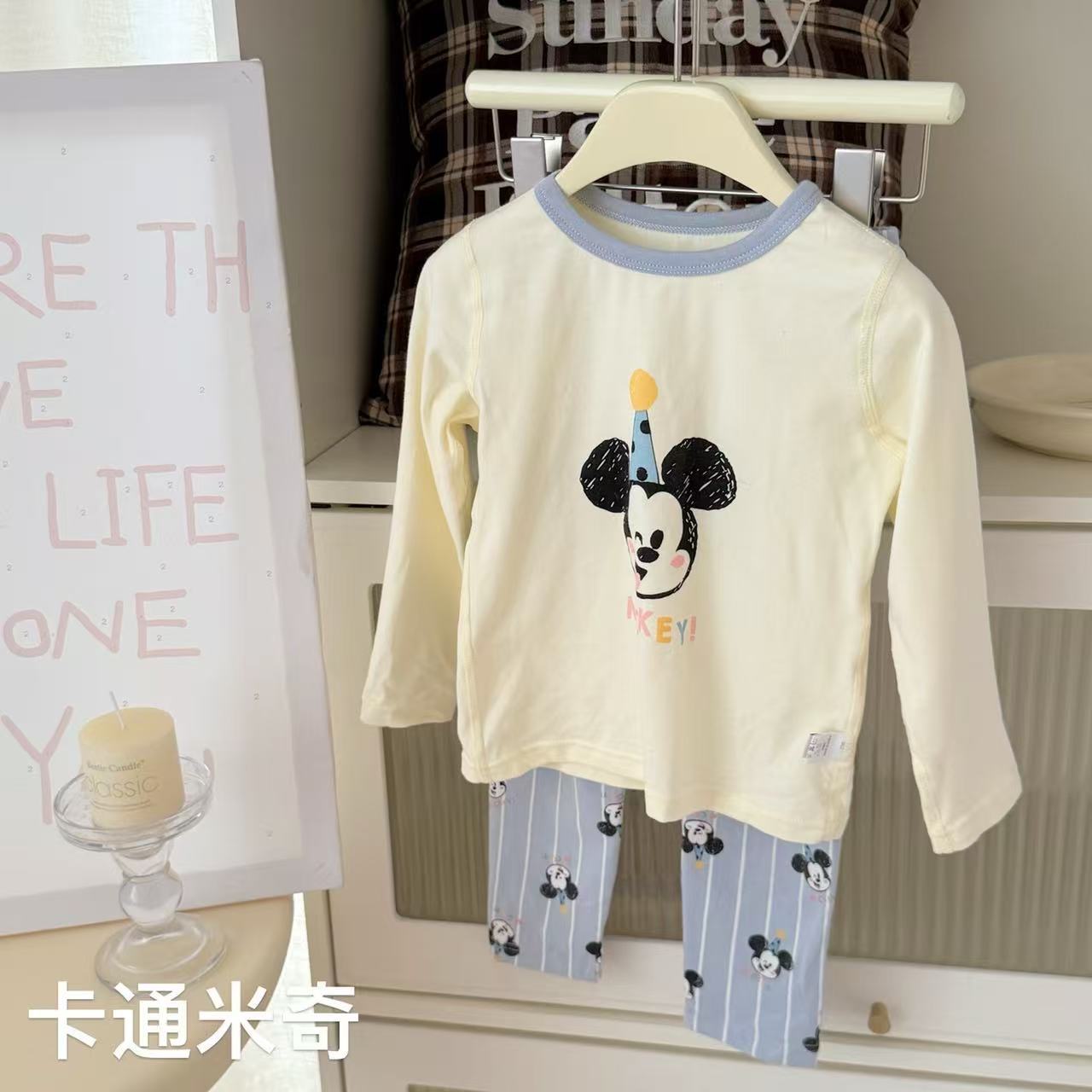 어린이 잠옷 A급 순면 가을옷 상의 남아 여아 라이크라 면 무봉제 가을옷 세트 대형 소형 H 아동복
