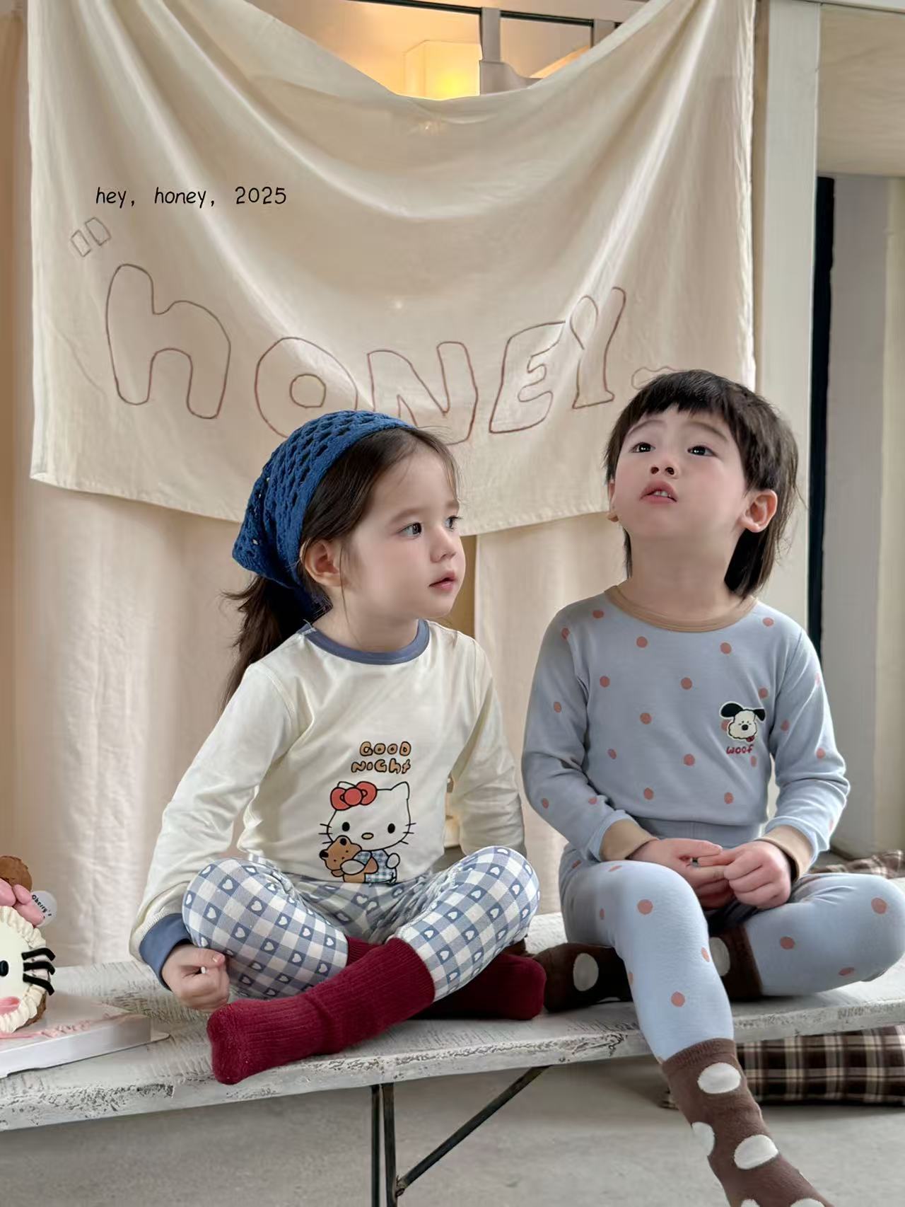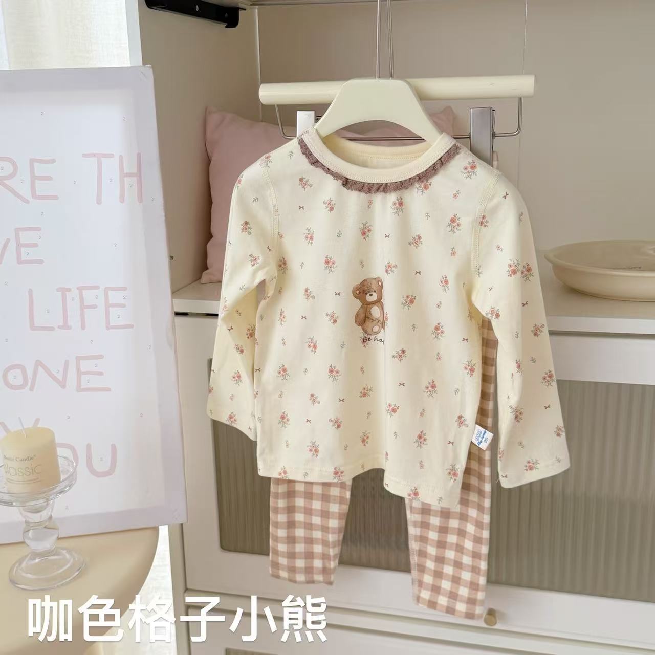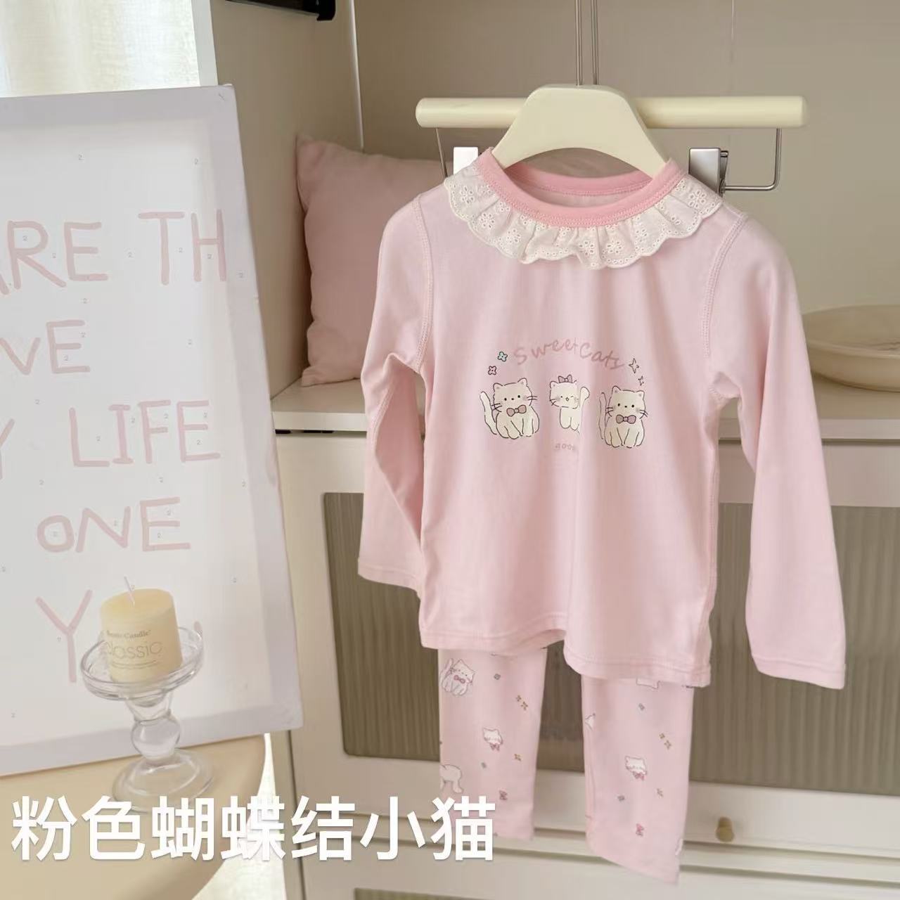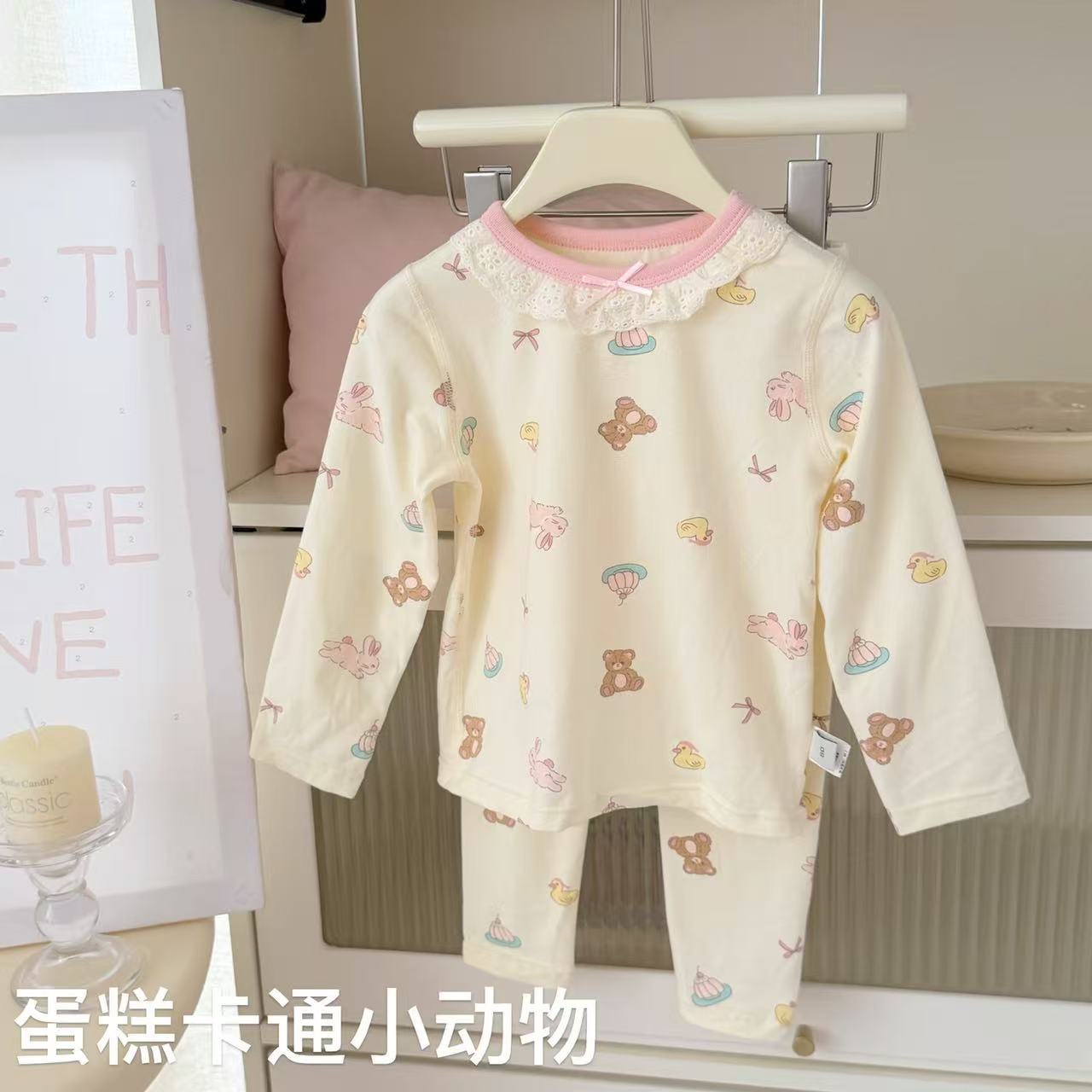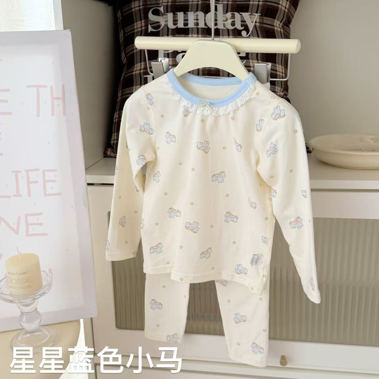 어린이 잠옷 A급 순면 가을옷 상의 남아 여아 라이크라 면 무봉제 가을옷 세트 대형 소형 H 아동복