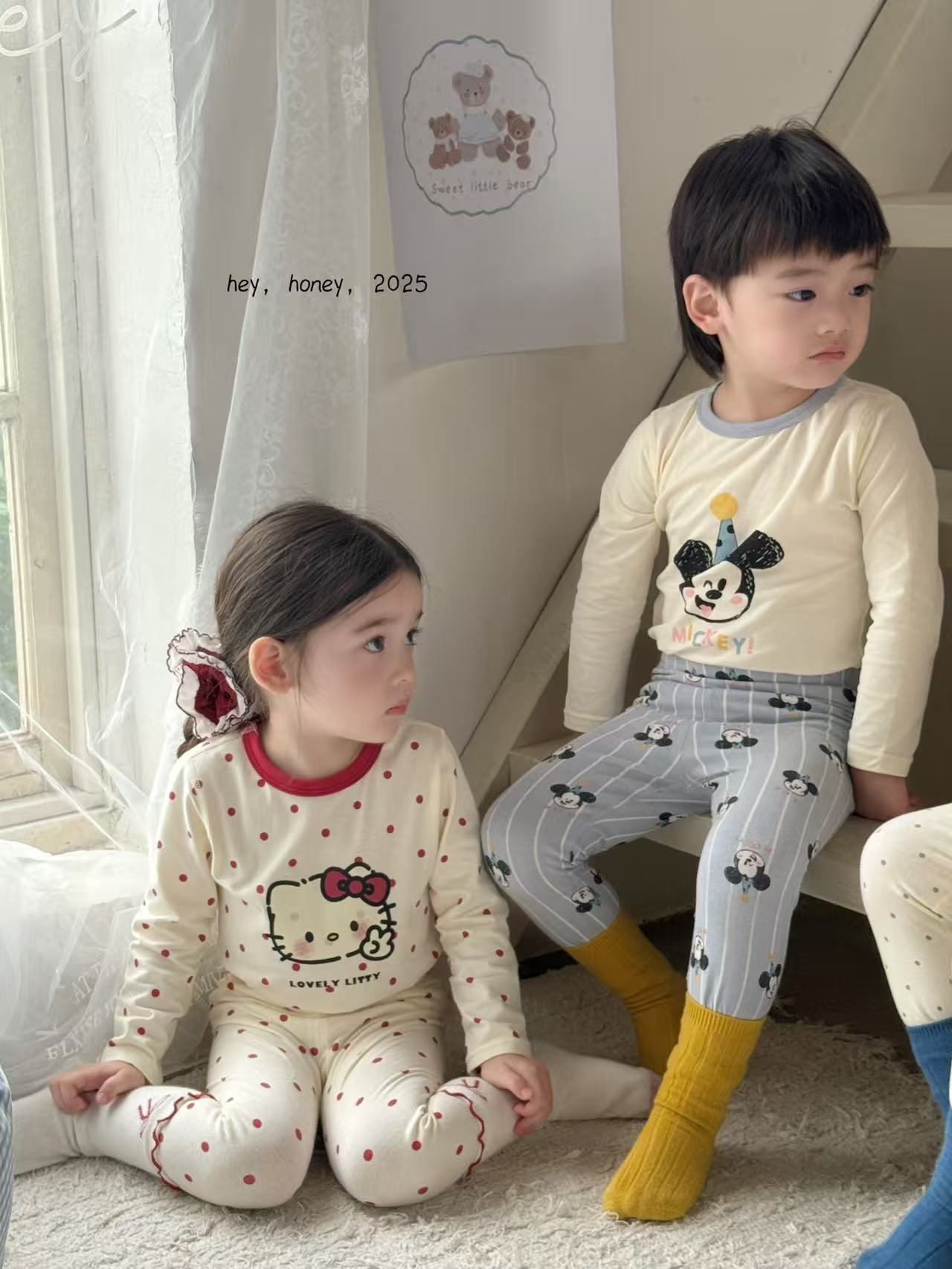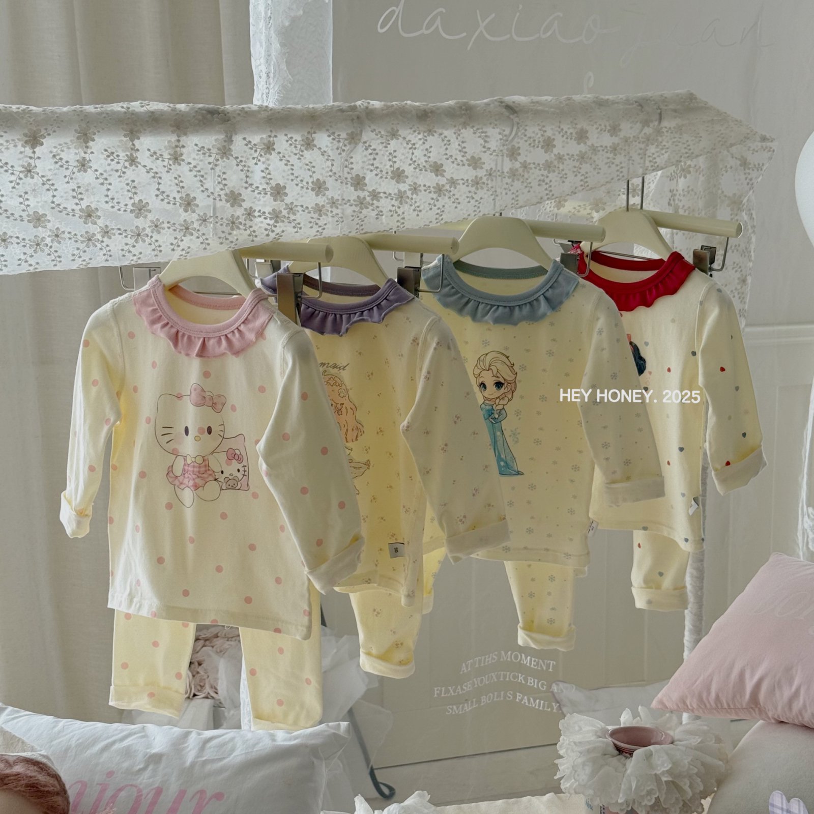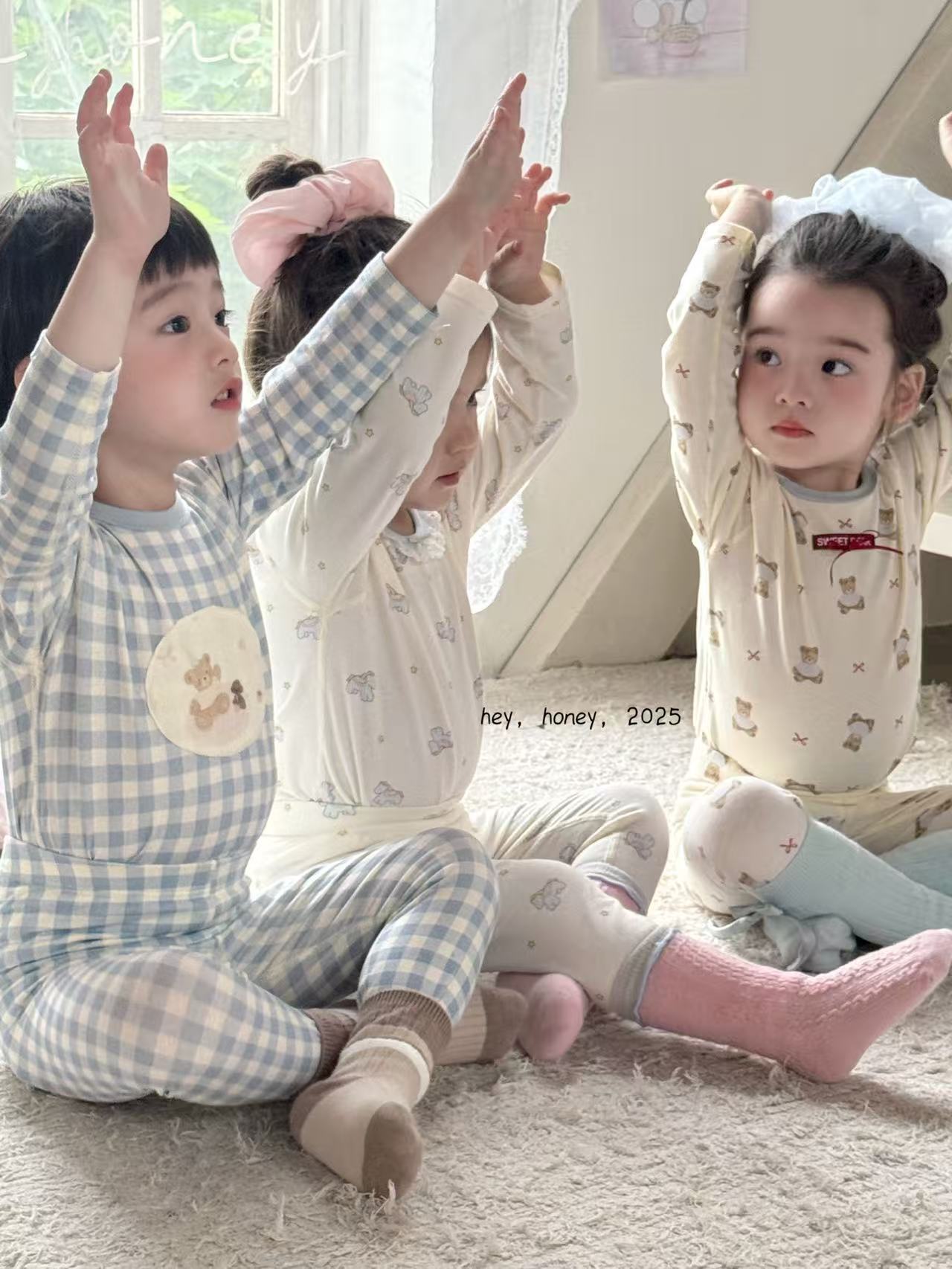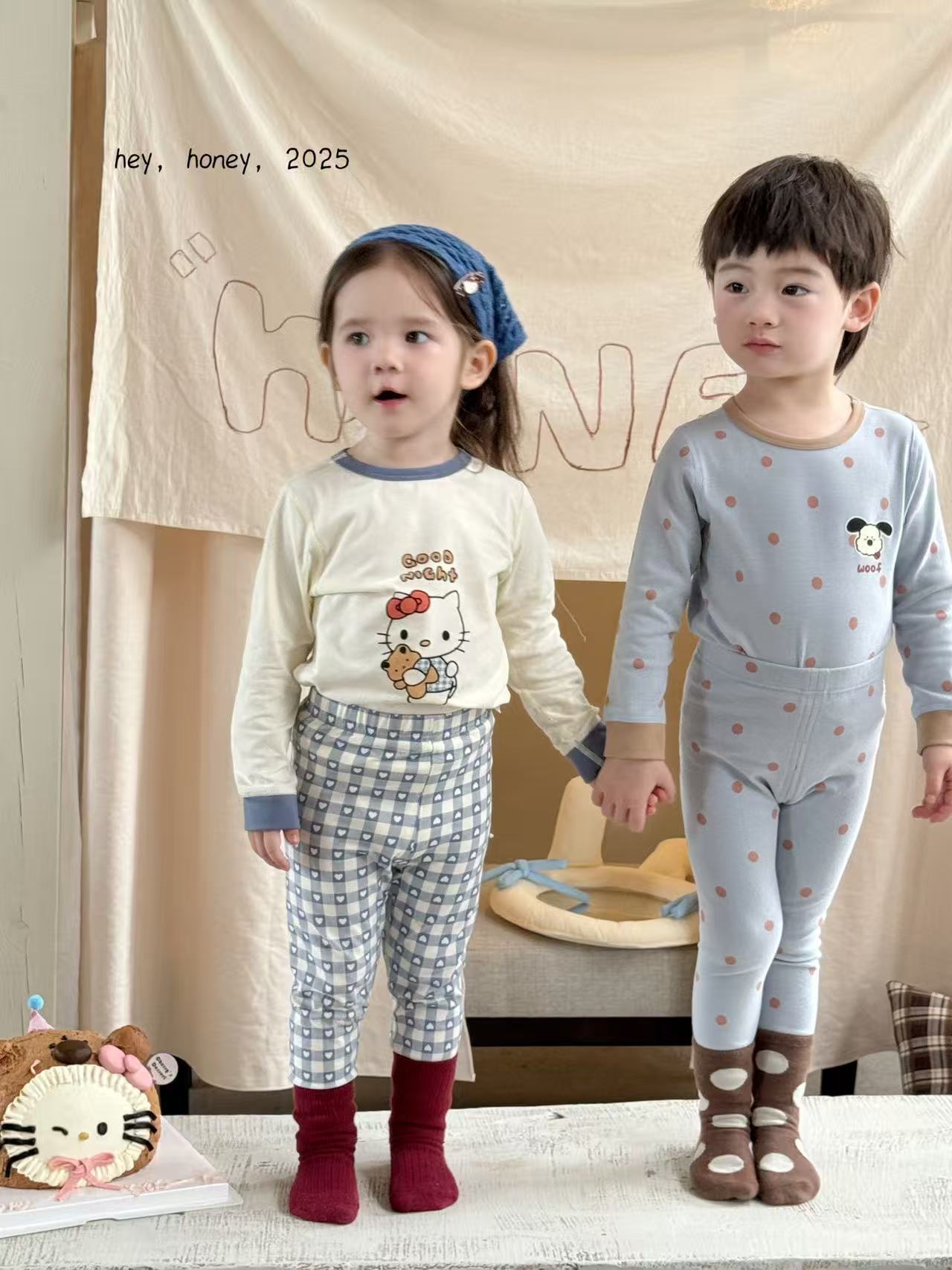 어린이 잠옷 A급 순면 가을옷 상의 남아 여아 라이크라 면 무봉제 가을옷 세트 대형 소형 H 아동복