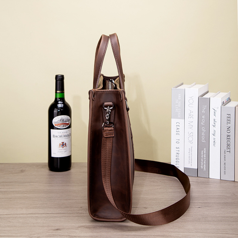 공장 도매 남자 핸드백 가로 미친 말 가죽 서류 가방 남자 비즈니스 컴퓨터 가방 어깨 메신저 가방 국경 간스토어 가기