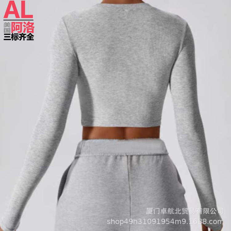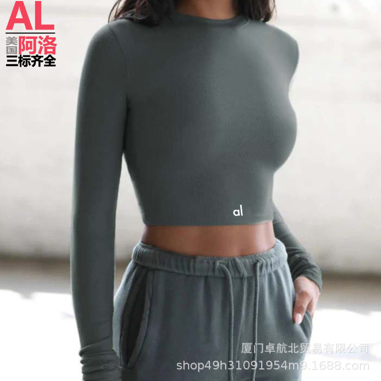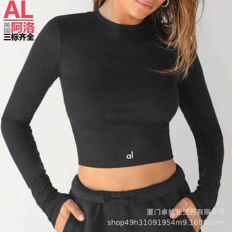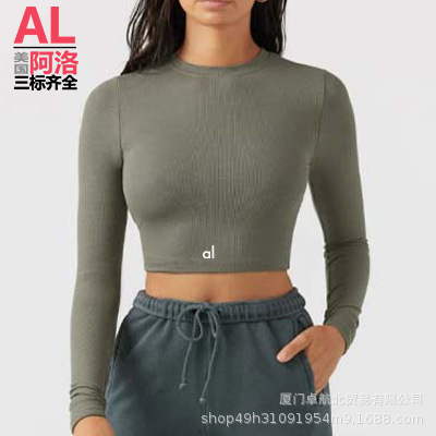 북미 AL YOGA 타이트한 긴팔 요가복 반바지 셔츠 배꼽 노출 런닝 스포츠 필라테스 탑