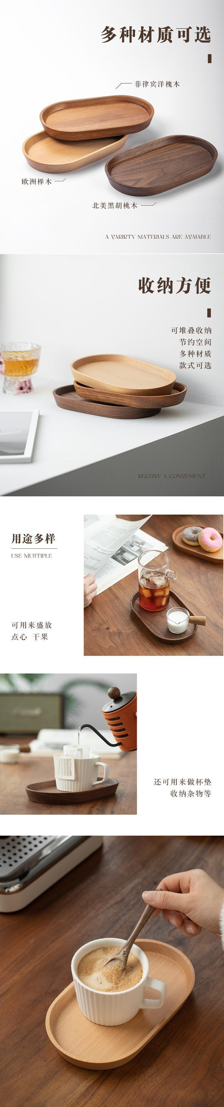 일본식 나무 타원형 트레이 단단한 나무 디너 트레이 검은 호두 애프터눈 티 커피 트레이 절묘한 작은 트레이