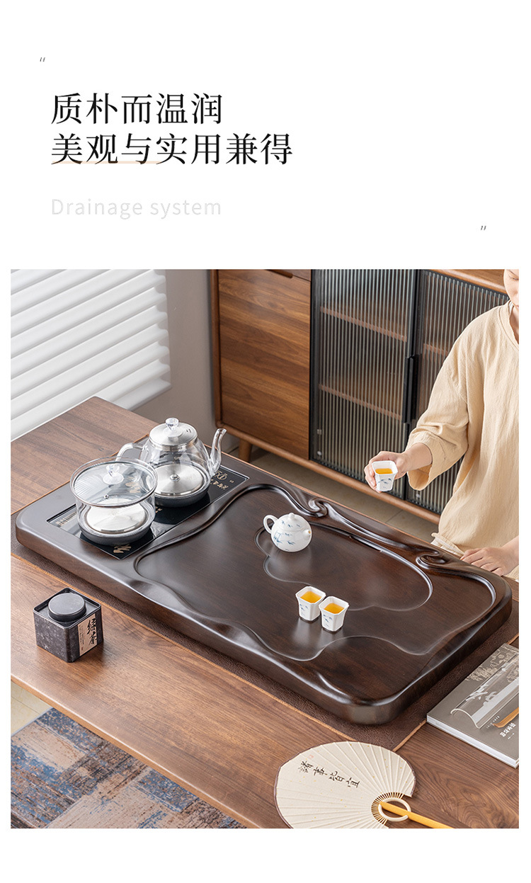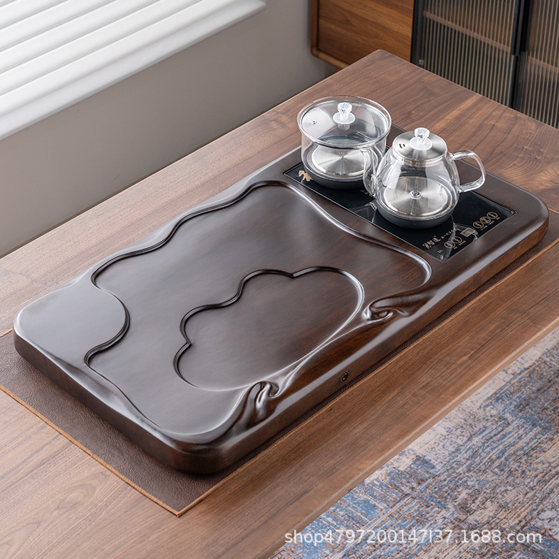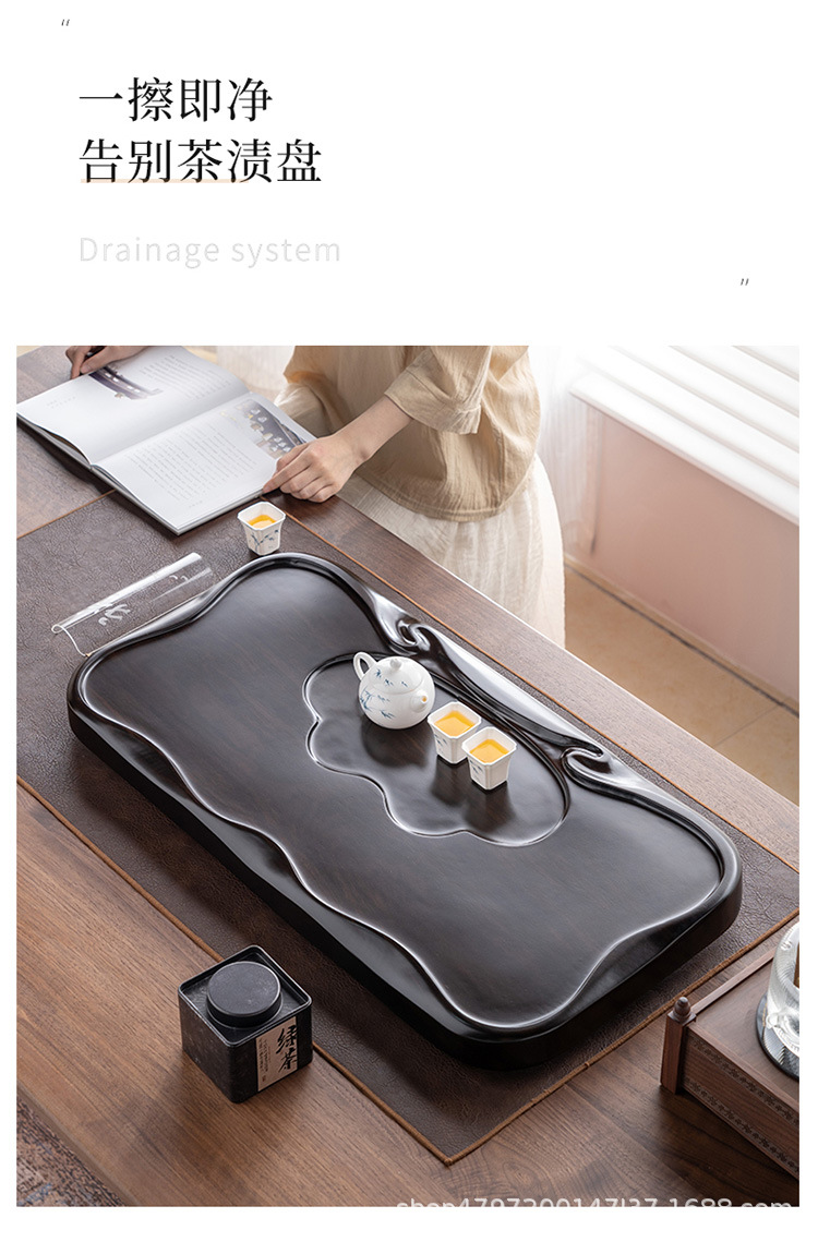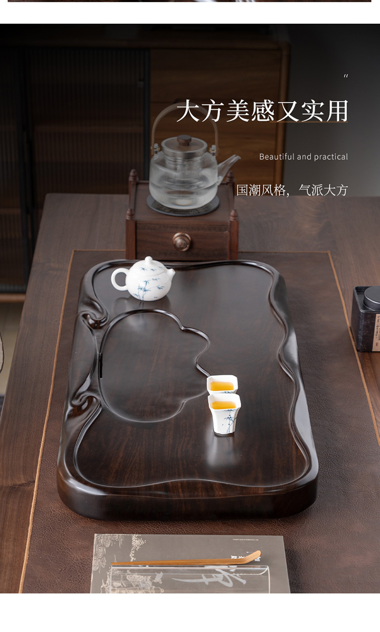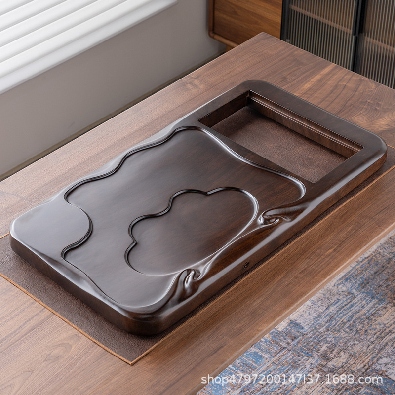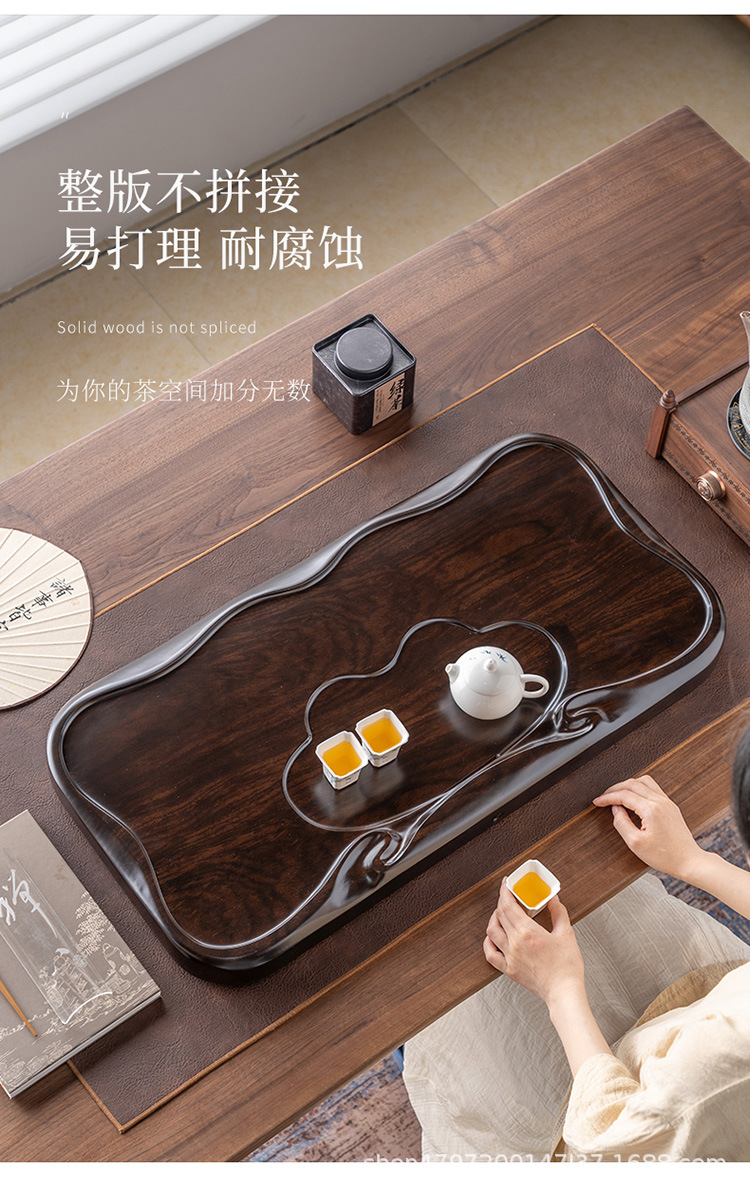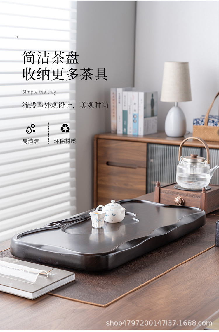 흑단 원목 티 트레이, 원목 가정용 간단한 직사각형 티 테이블, 크고 작은 쿵푸 티 세트, 배수 티 트레이