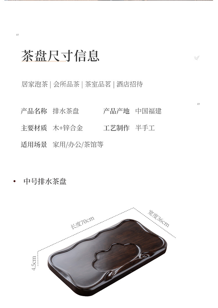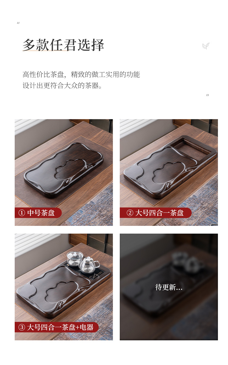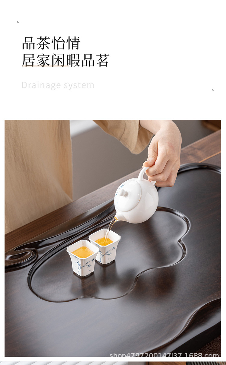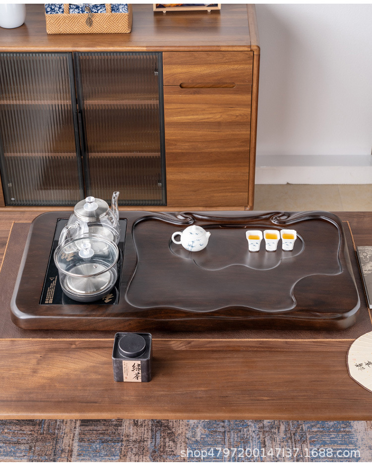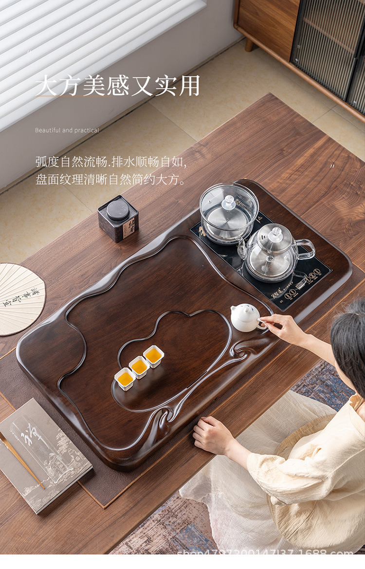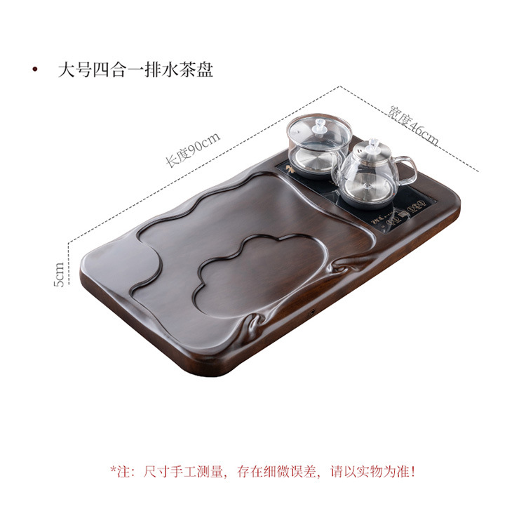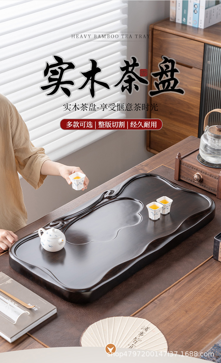 흑단 원목 티 트레이, 원목 가정용 간단한 직사각형 티 테이블, 크고 작은 쿵푸 티 세트, 배수 티 트레이