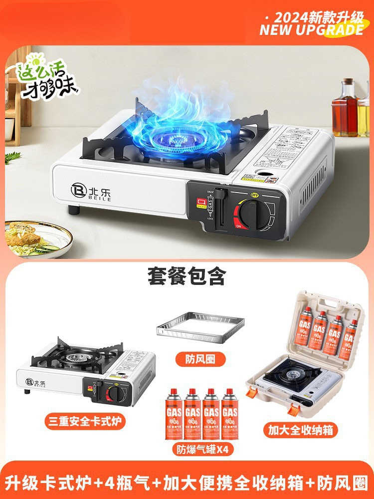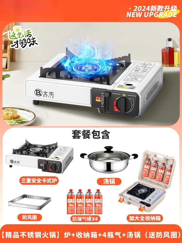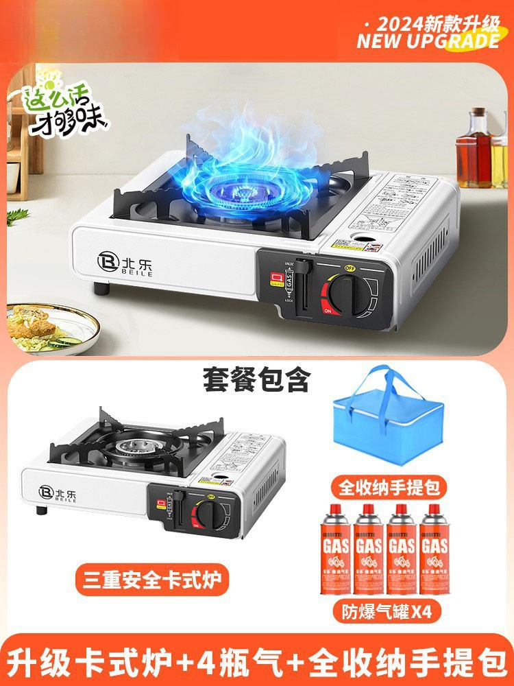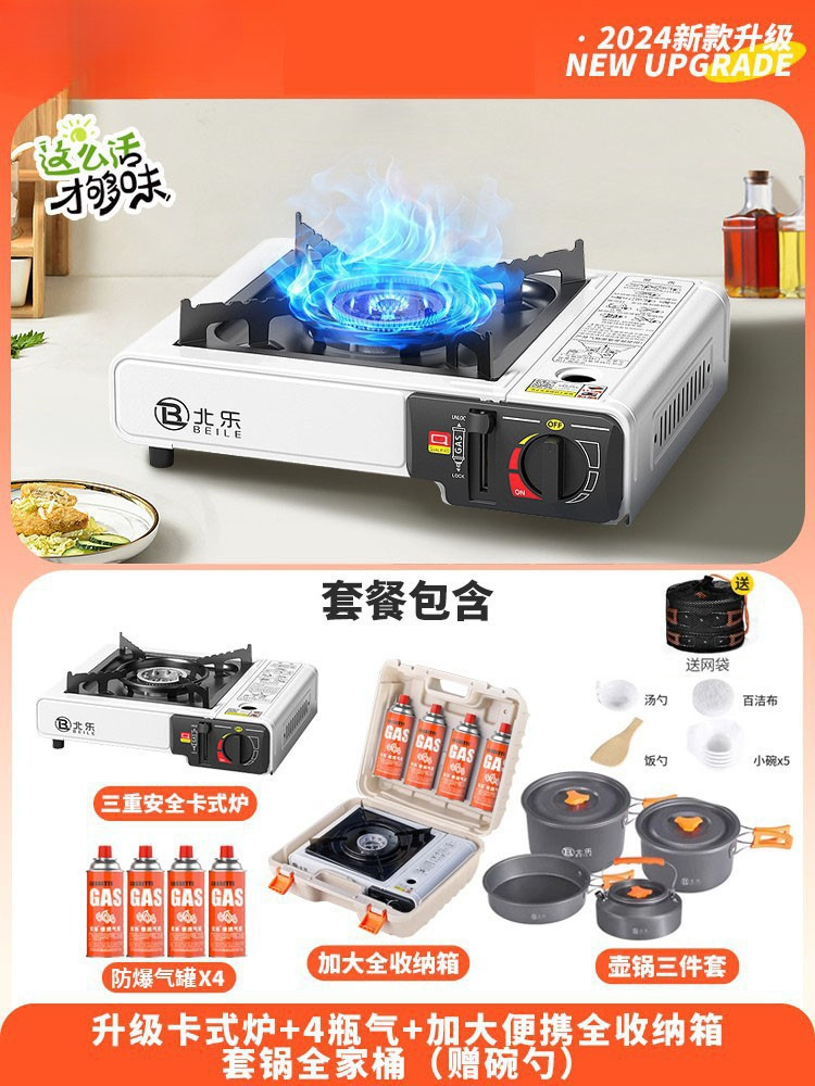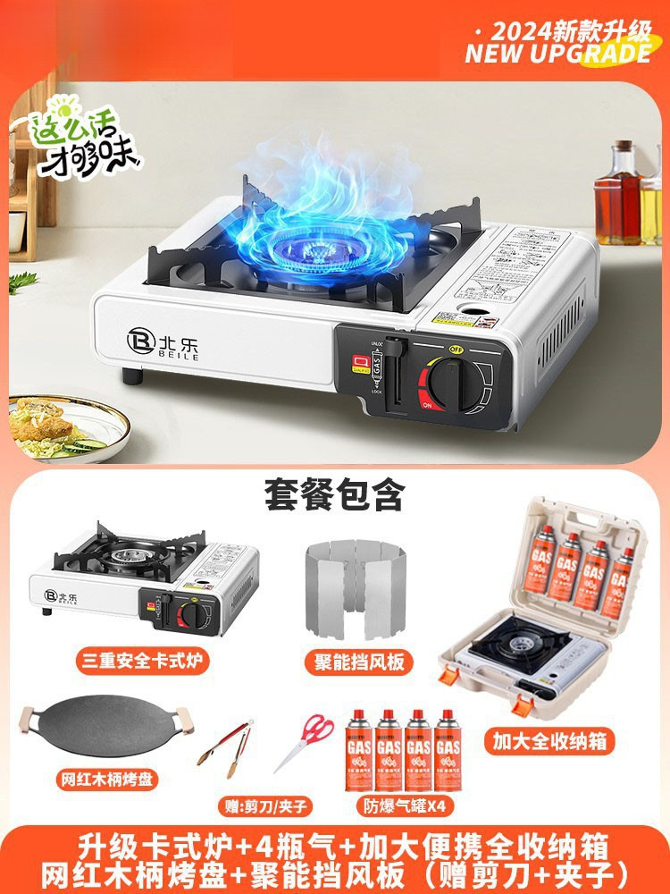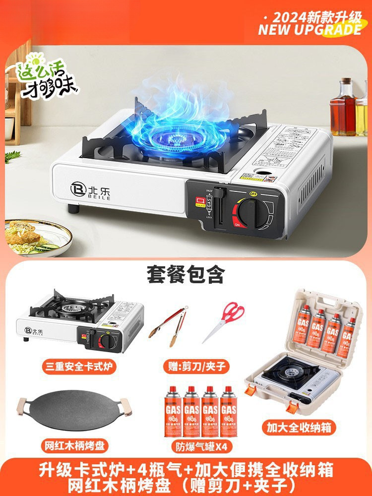 • *업그레이드된 카세트 스토브 + 가스 4병 + 대형 휴대용 풀 수납함 + 인터넷 연예인 나무 손잡이 베이킹 팬(무료 가위 + 클립)*