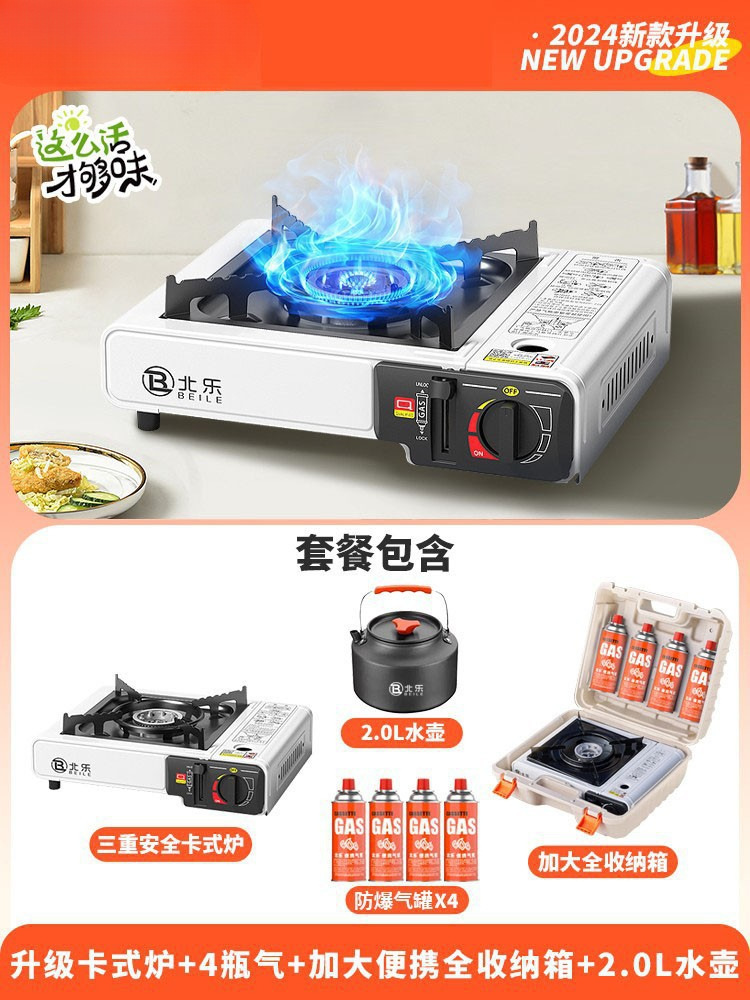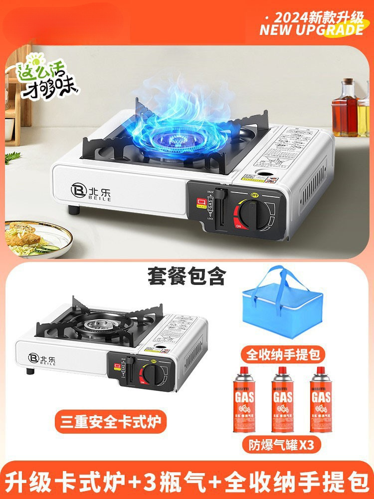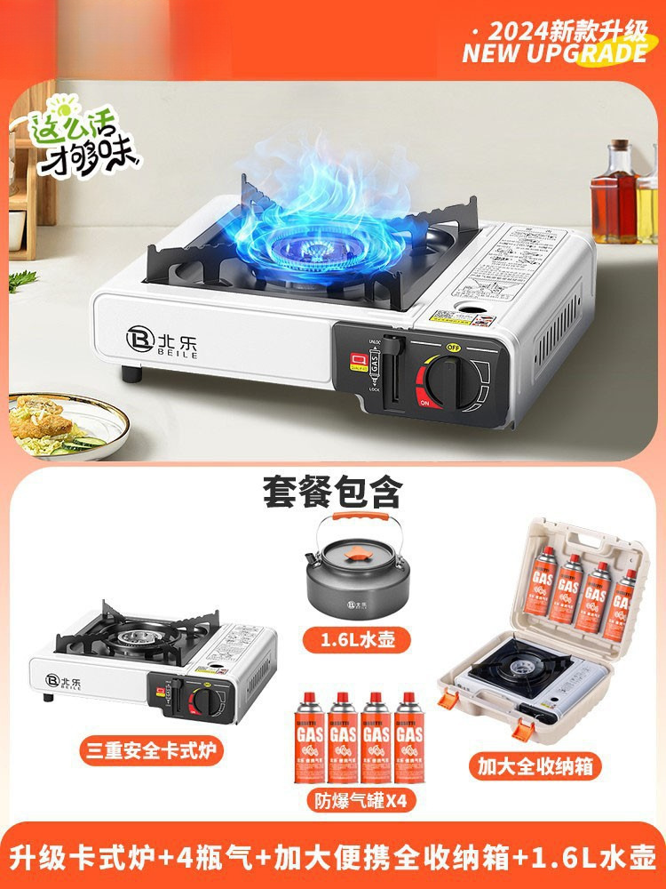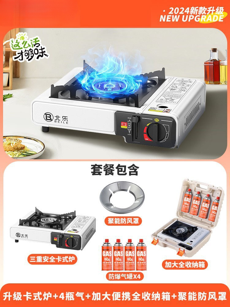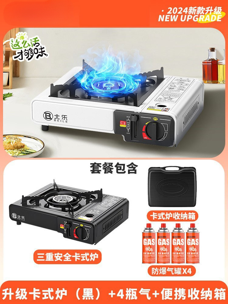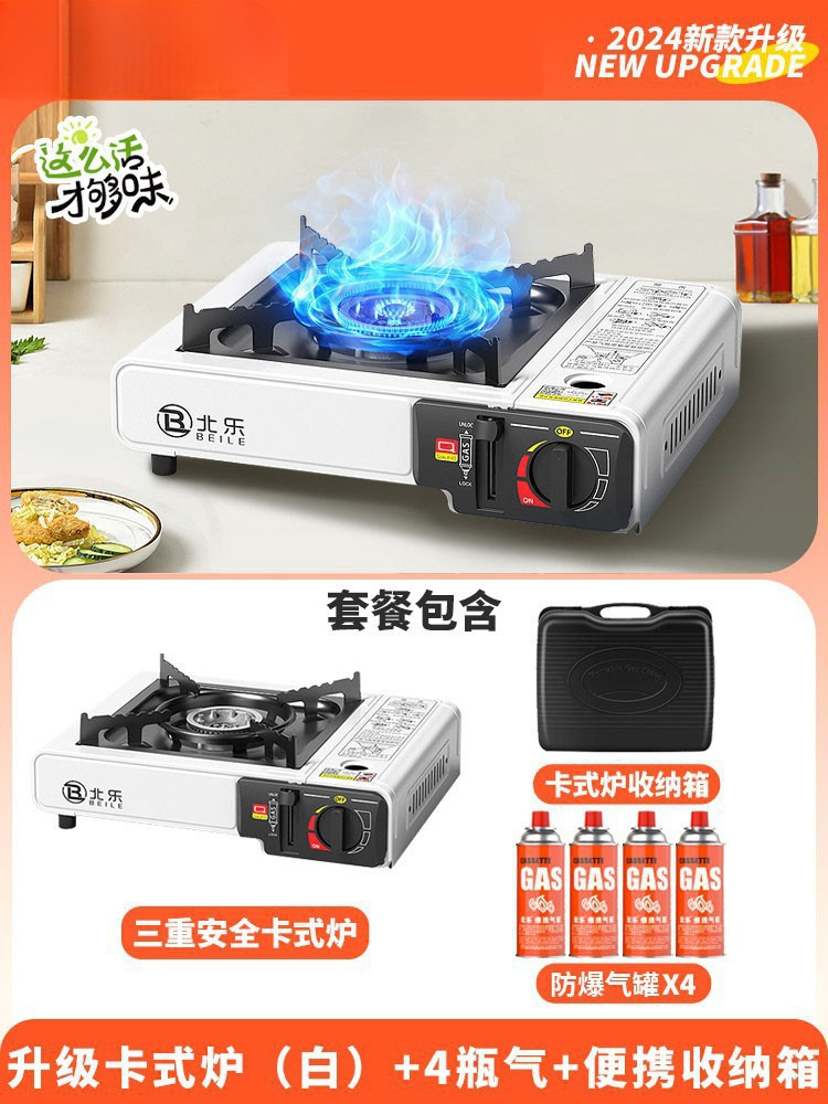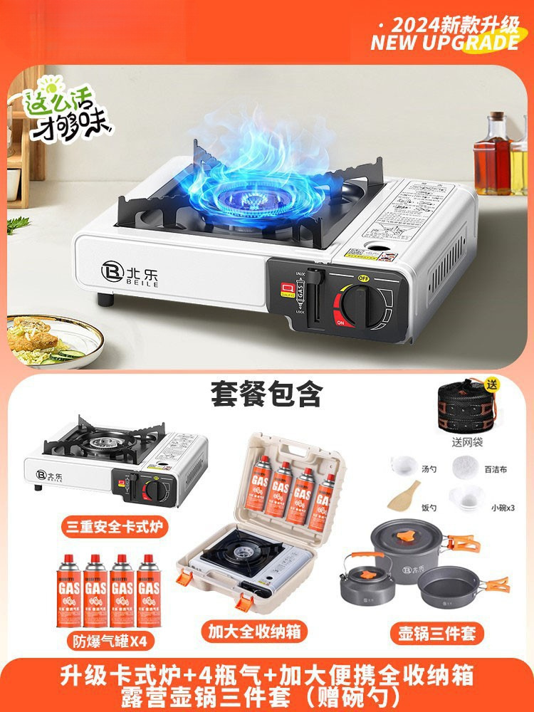 • *업그레이드된 카세트 스토브 + 가스 4병 + 대형 휴대용 풀 수납함 + 인터넷 연예인 나무 손잡이 베이킹 팬(무료 가위 + 클립)*