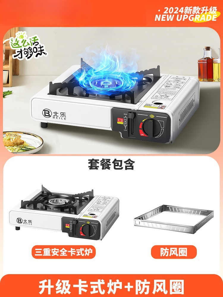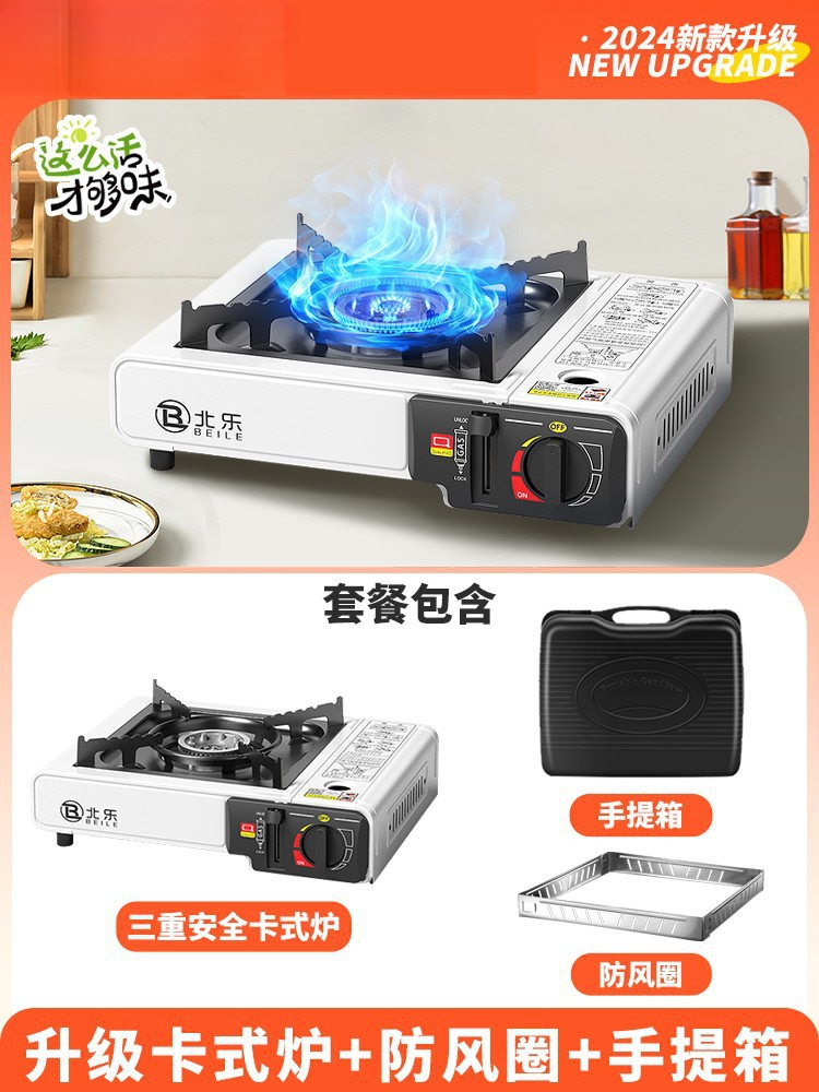 • *업그레이드된 카세트 스토브 + 가스 4병 + 대형 휴대용 풀 수납함 + 인터넷 연예인 나무 손잡이 베이킹 팬 + 앞유리(무료 가위 + 클립)*