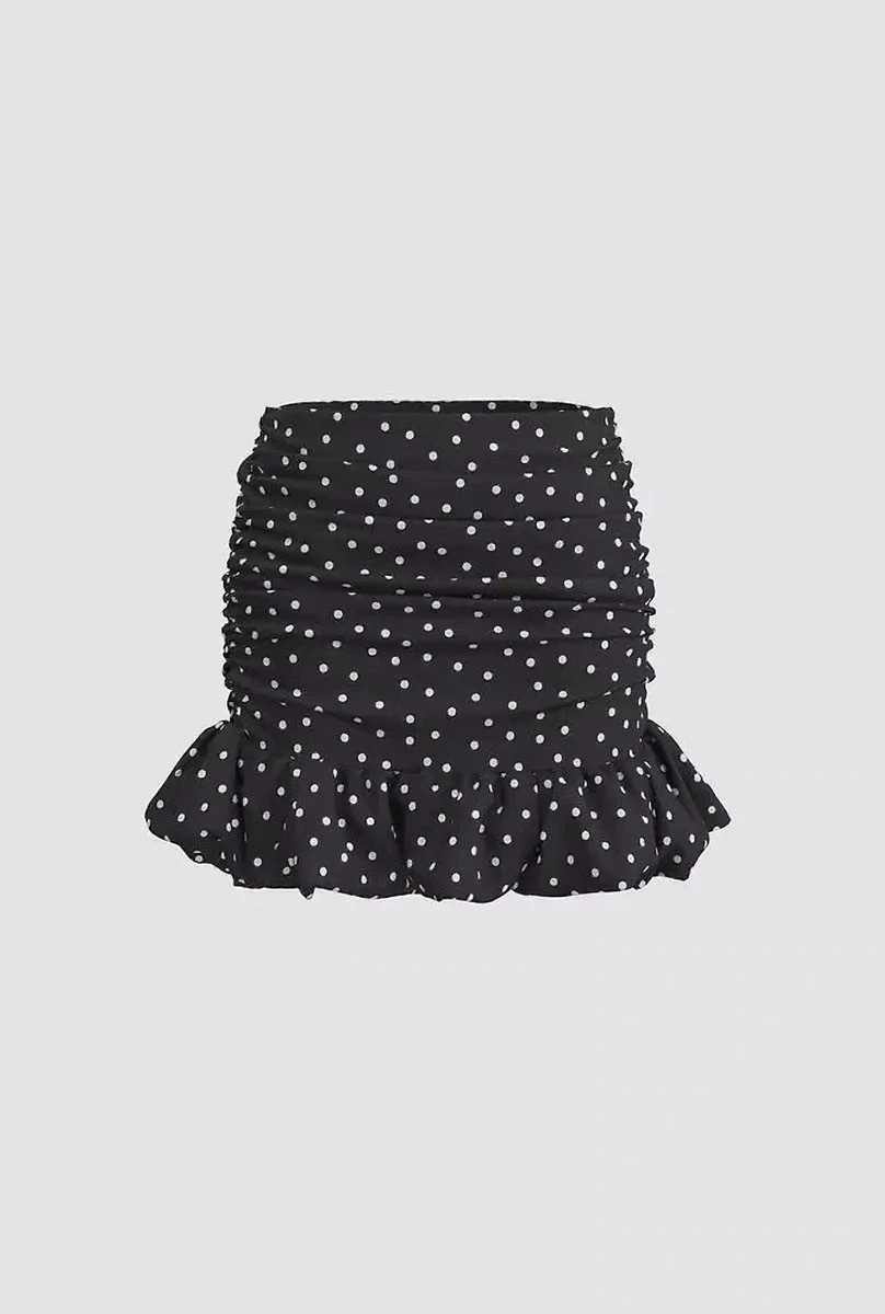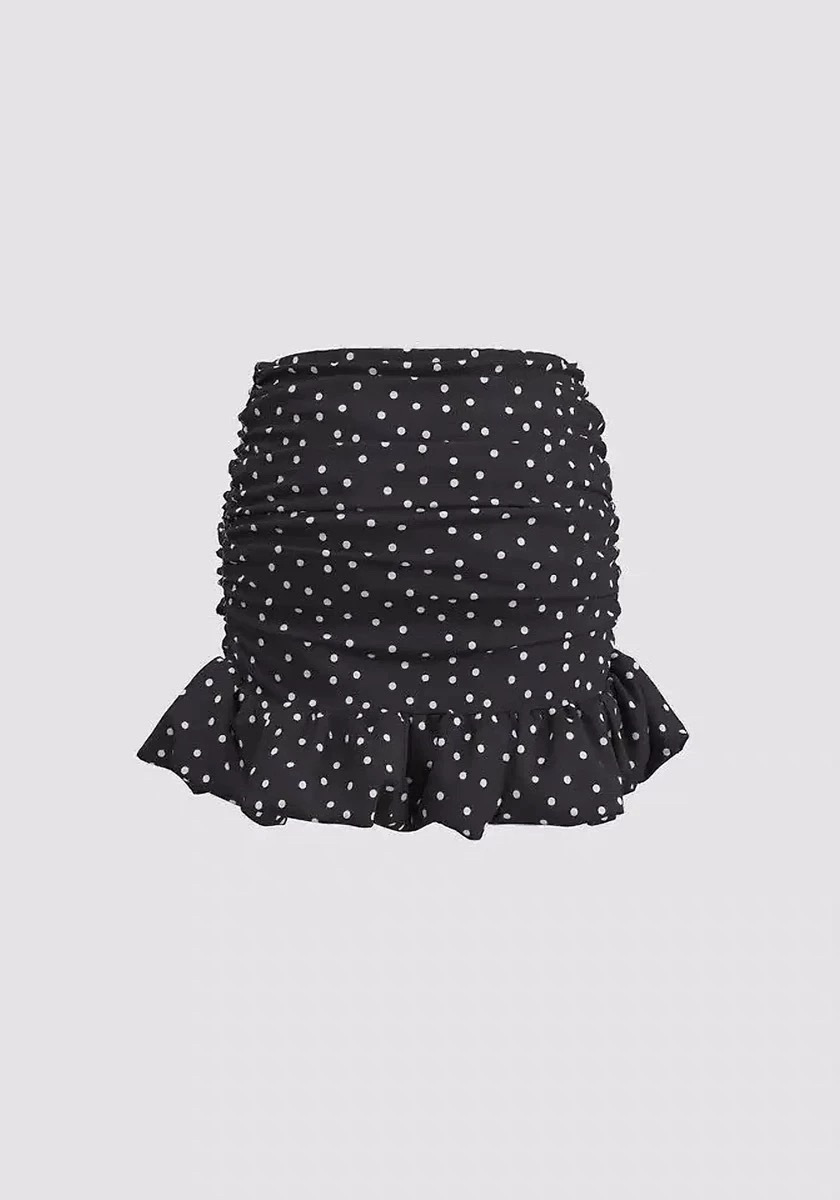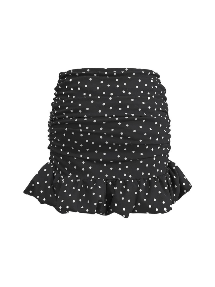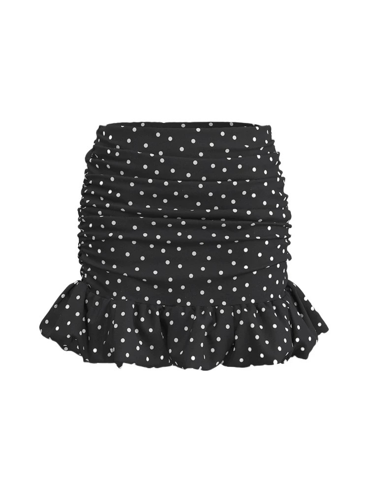 Xia Xin 여성 프렌치 스커트 우아한 블랙 폴카 도트 러플 플리츠 짧은 슬림 스커트
