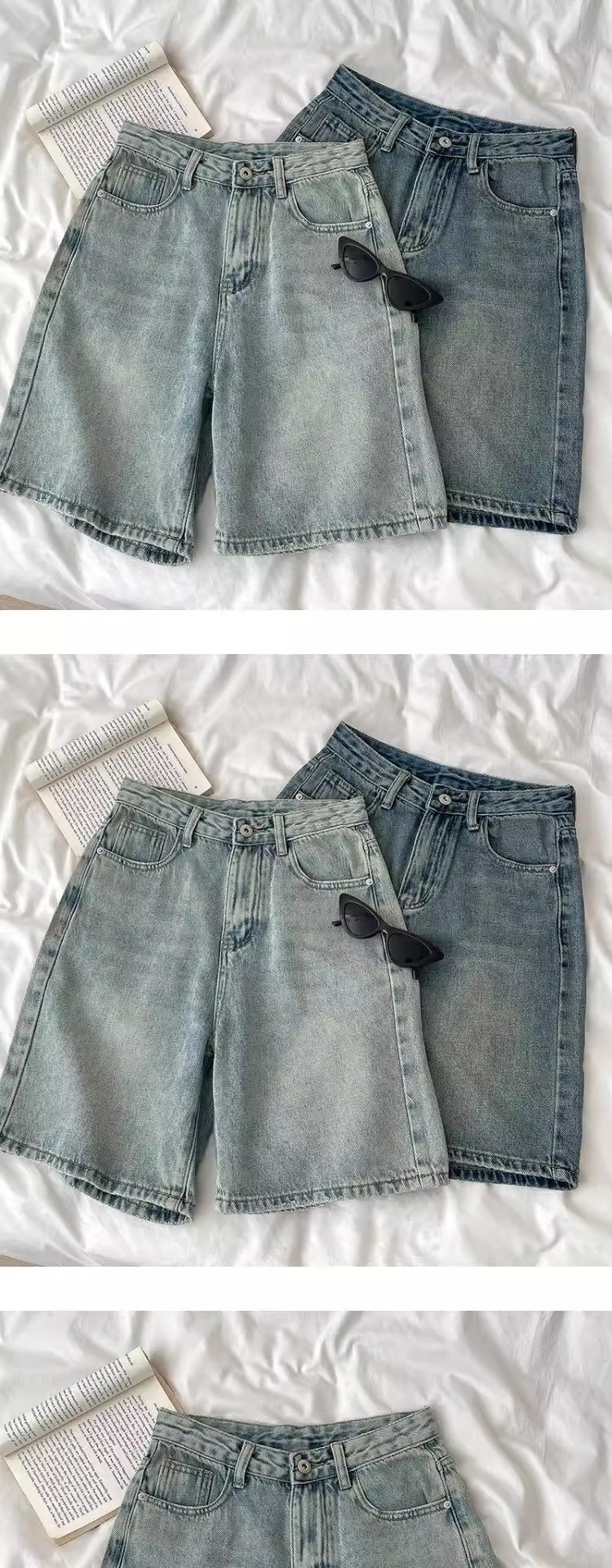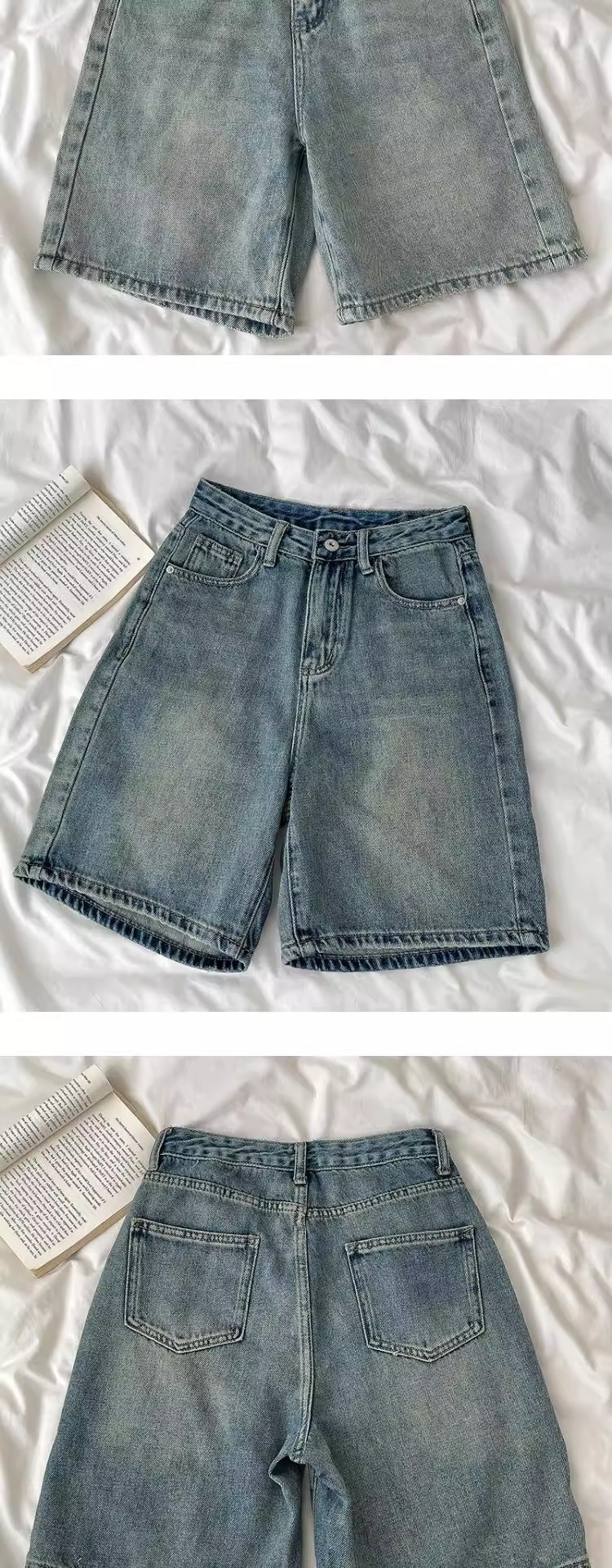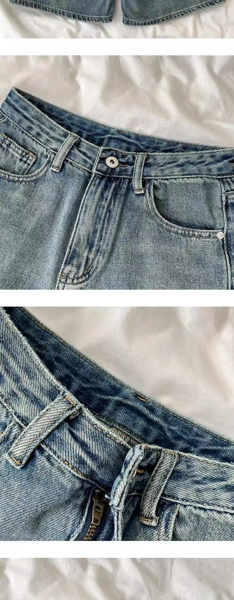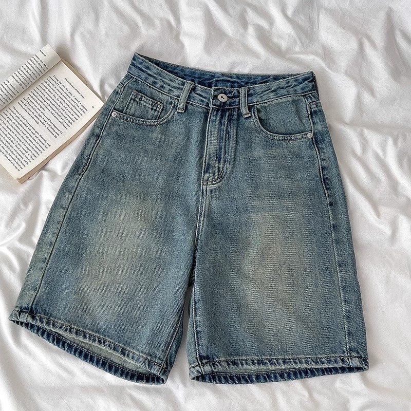 여성용 레트로 디스트레스드 청바지 여름 신작 플러스 사이즈 하이 웨이스트 루즈 와이드 레그 5부 바지 소형 중간 바지스토어 가기
