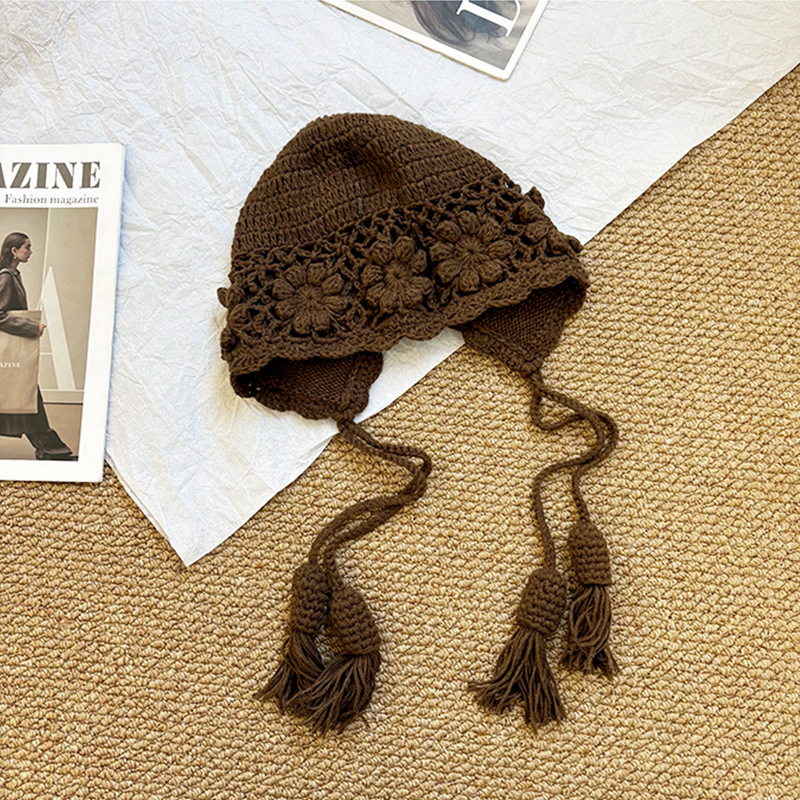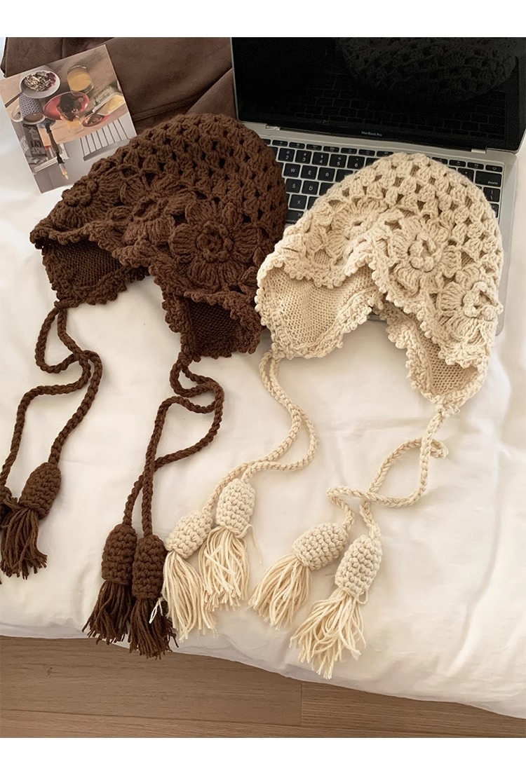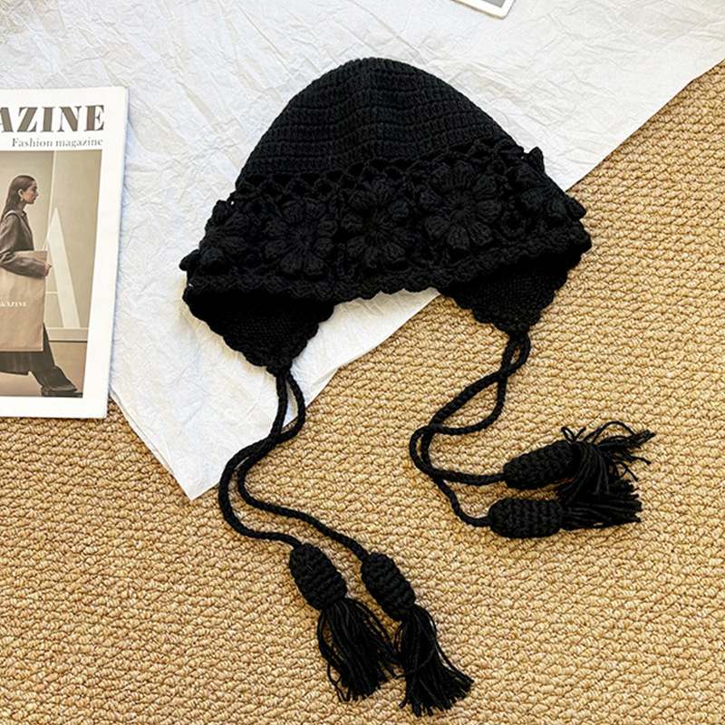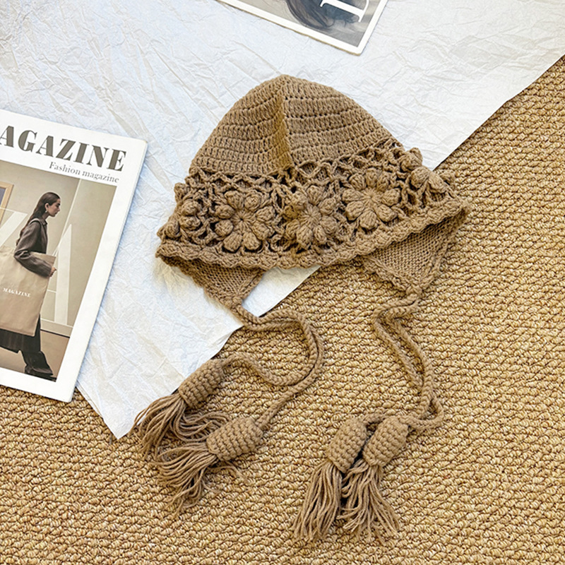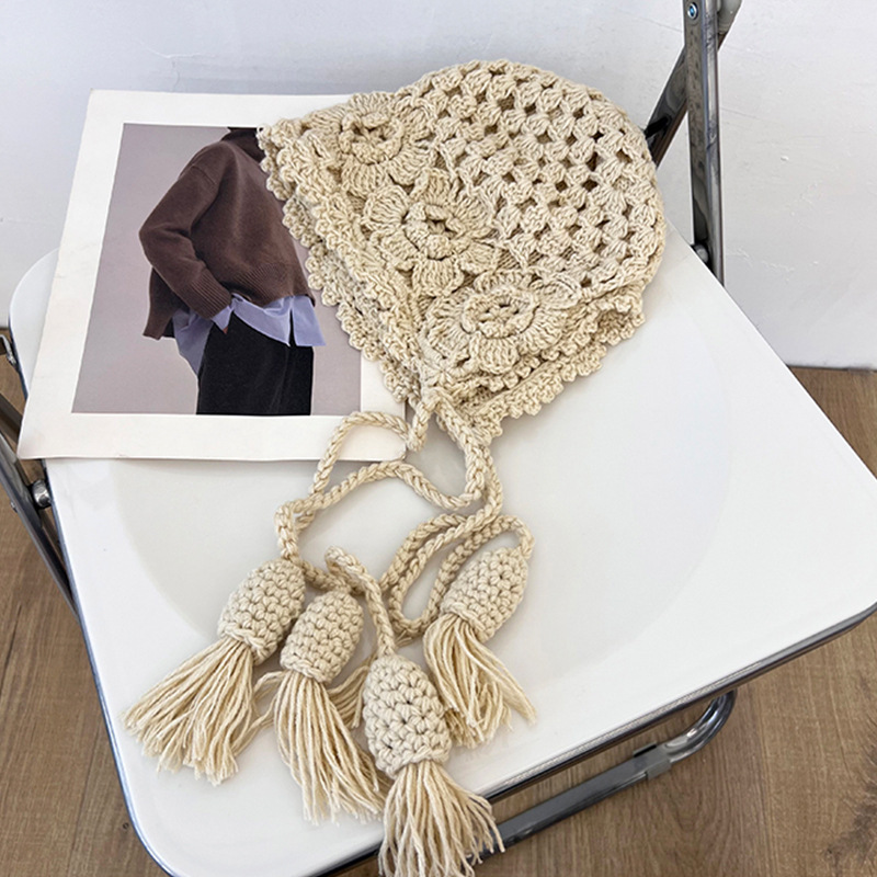 가을과 겨울 여성용 Sichuan West Tourist Flower Tassel Red Wool Hat 니트 Baotou Hat Ear Protection Small Pullover Hat