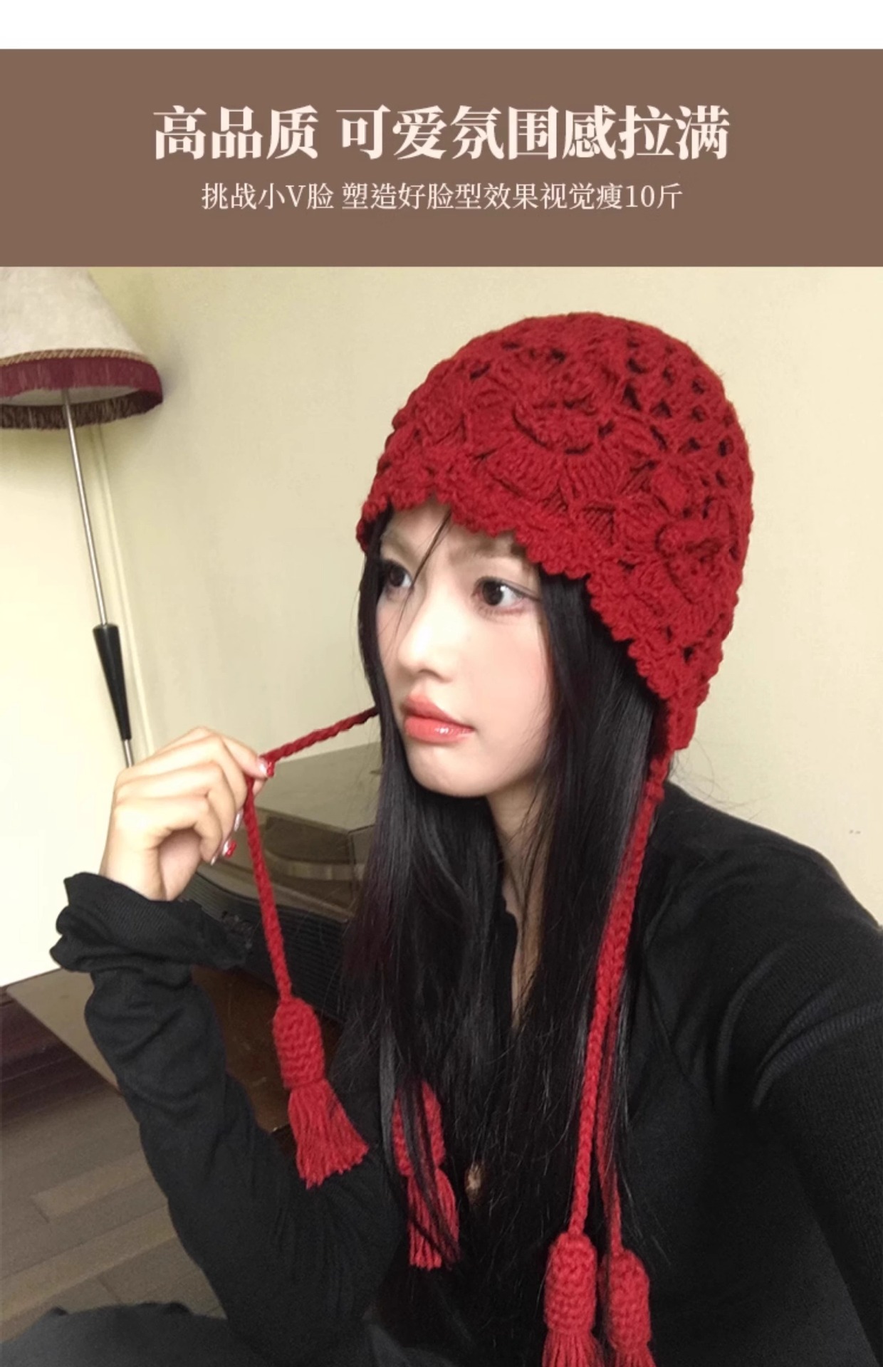 가을과 겨울 여성용 Sichuan West Tourist Flower Tassel Red Wool Hat 니트 Baotou Hat Ear Protection Small Pullover Hat스토어 가기