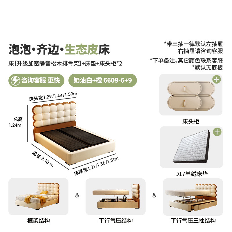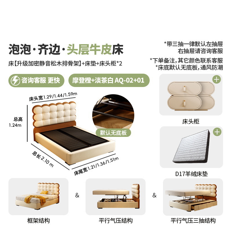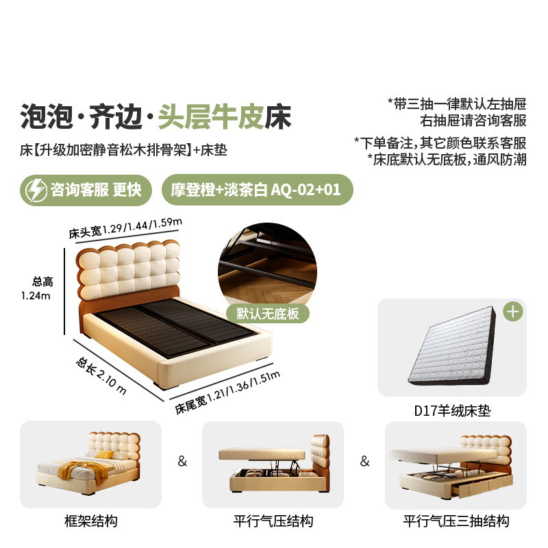 • 1층 소가죽 + D17 매트리스/업그레이드된 사일런트 립 프레임