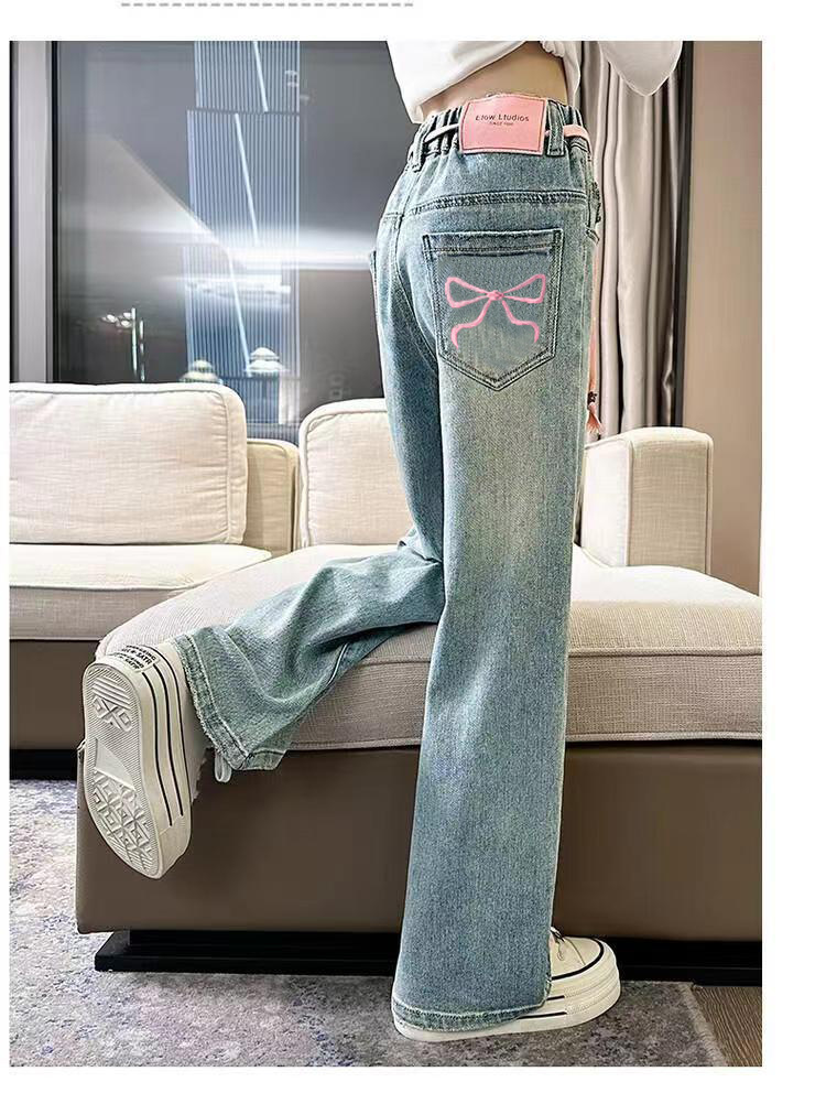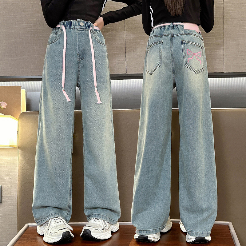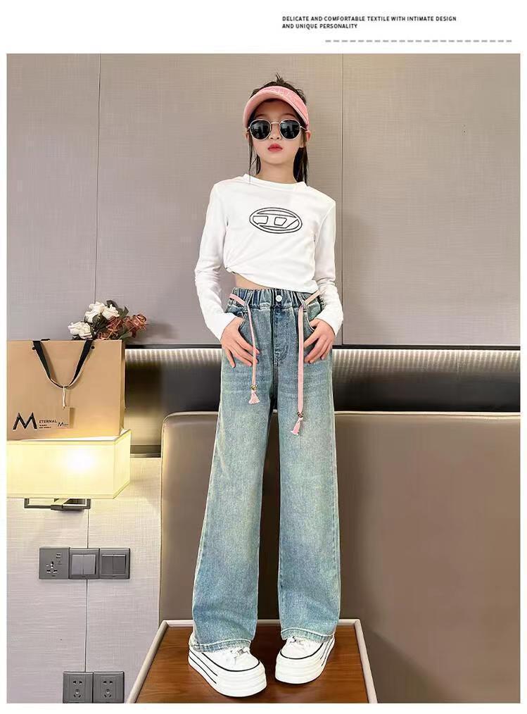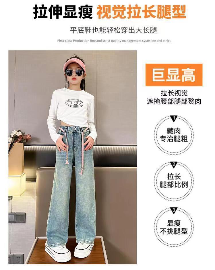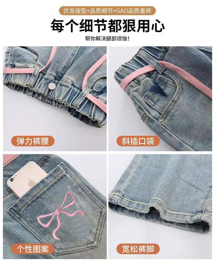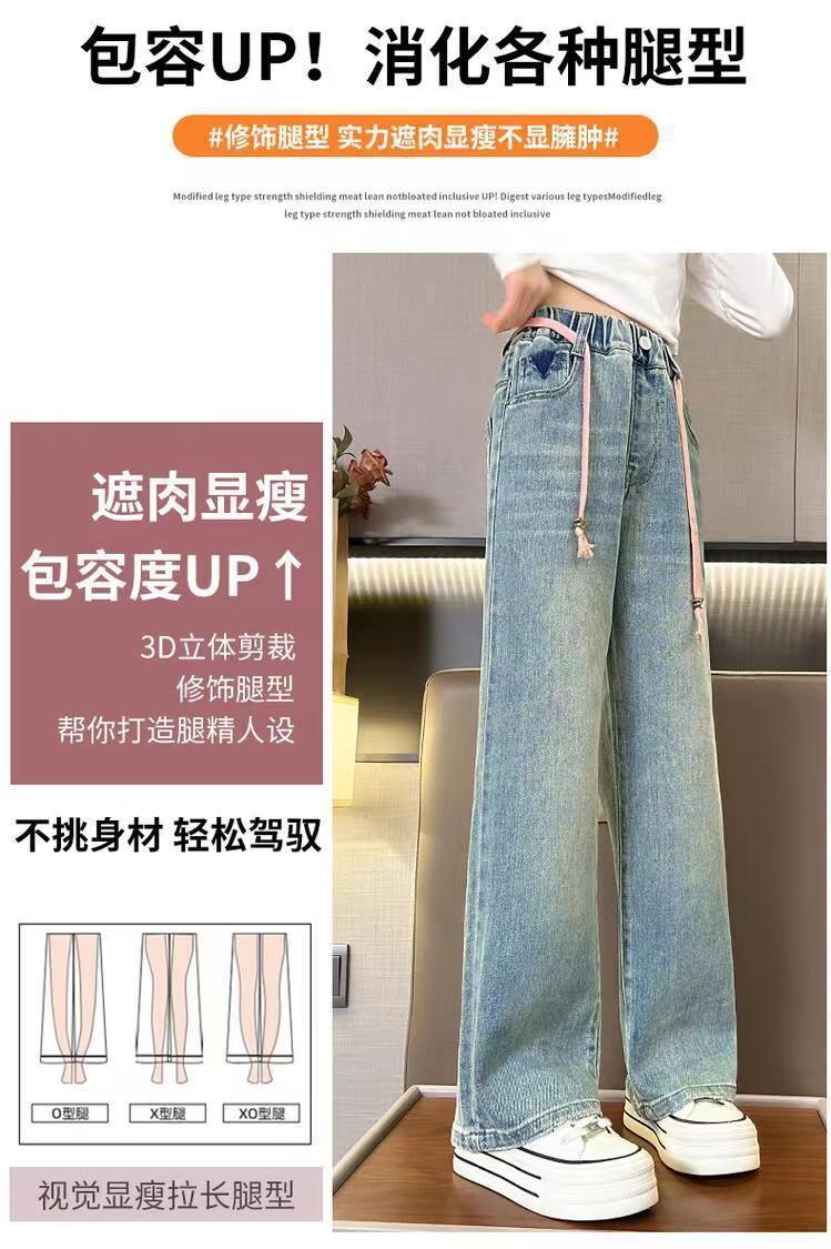봄과 가을 새로운 스타일 중대형 아동복 여아 루즈한 와이드 팬츠 여아 한국식 캐주얼 다용도 청바지스토어 가기