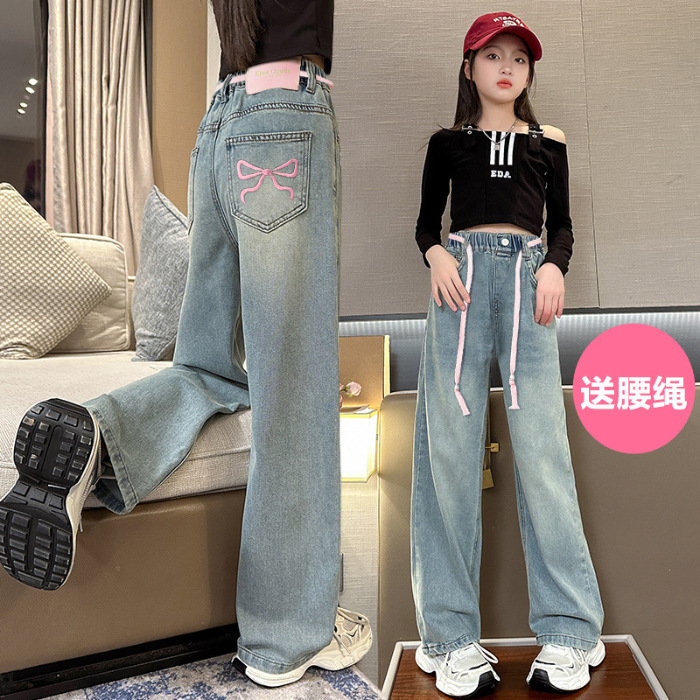 봄과 가을 새로운 스타일 중대형 아동복 여아 루즈한 와이드 팬츠 여아 한국식 캐주얼 다용도 청바지