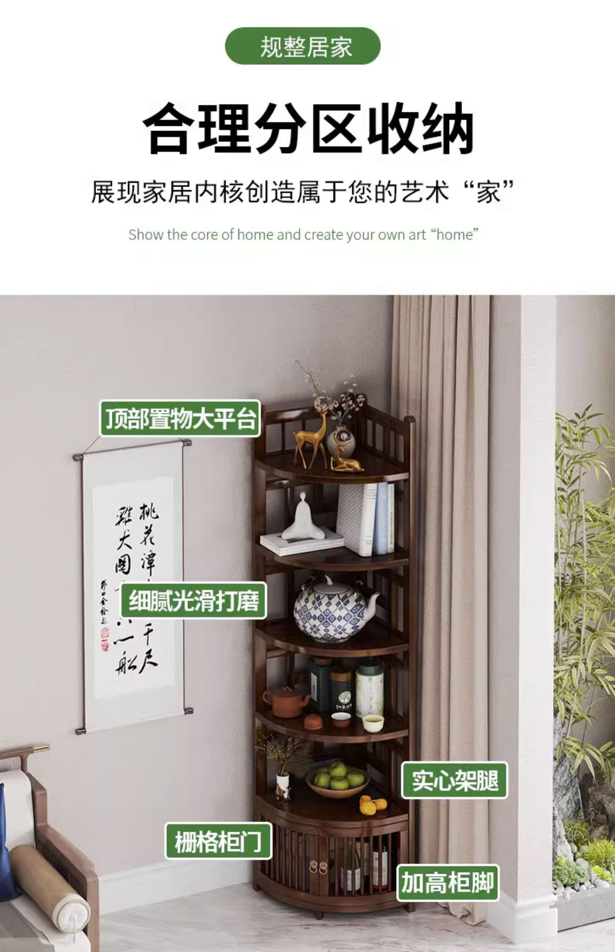 Bogu 선반 단단한 나무 중국 스타일 코너 스토리지 랙 거실 차 캐비닛 차 랙 다층 공간 절약형 책장 디스플레이 캐비닛
