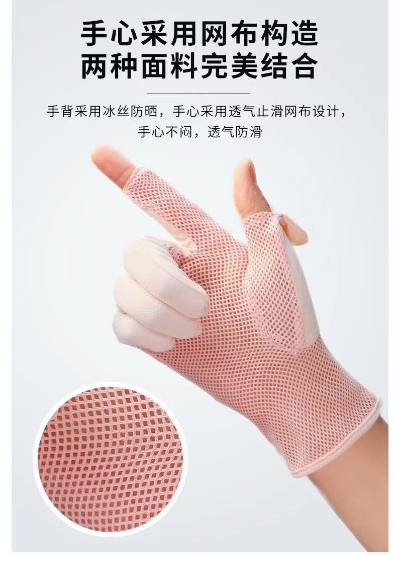 봄과 여름 여성 태양 보호 장갑 야외 안티 UV 얼음 메쉬 천 2 손가락 얇은 운전 터치 스크린 장갑 도매스토어 가기
