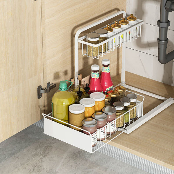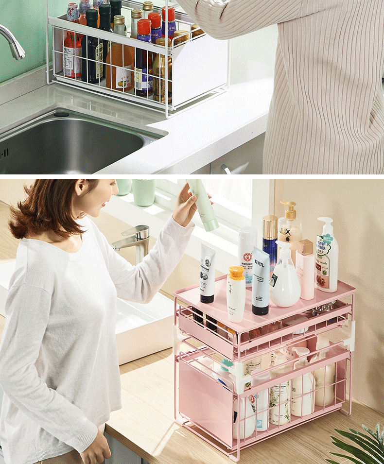 풀아웃 스토리지 랙 다층 도매 바닥 스토리지 랙 스토리지 바구니 캐비닛 텔레스코픽 주방 싱크대 아래 스토리지 랙스토어 가기