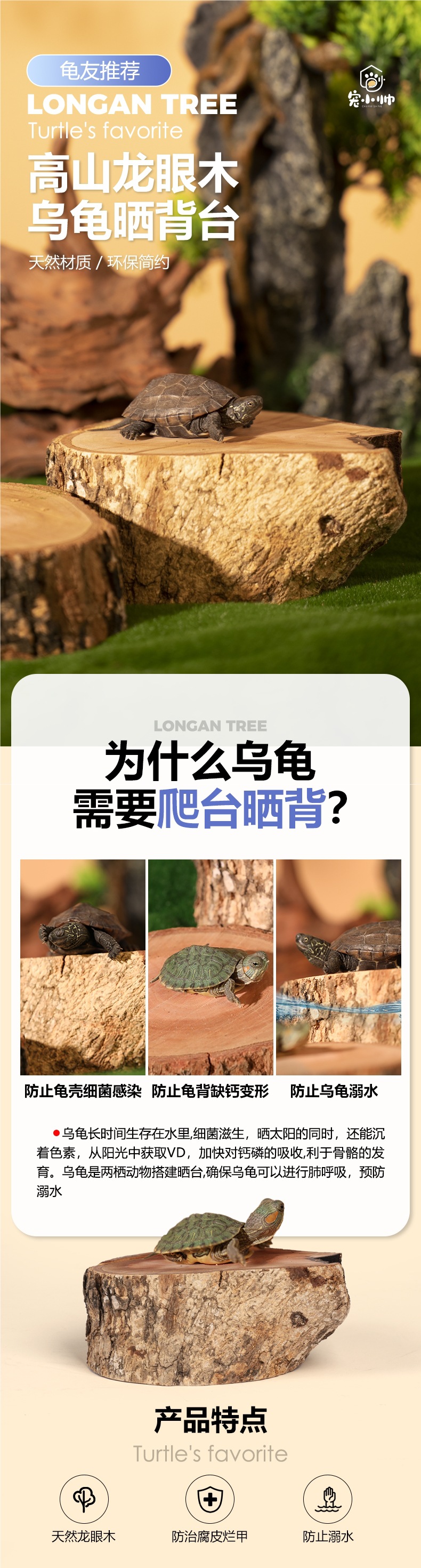 거북이 천연 용안나무 태양대, 거북이 수조 조경, 침수목 장식품, 무조리 용안 녹색 잎 거북이 휴식 및 태양대스토어 가기