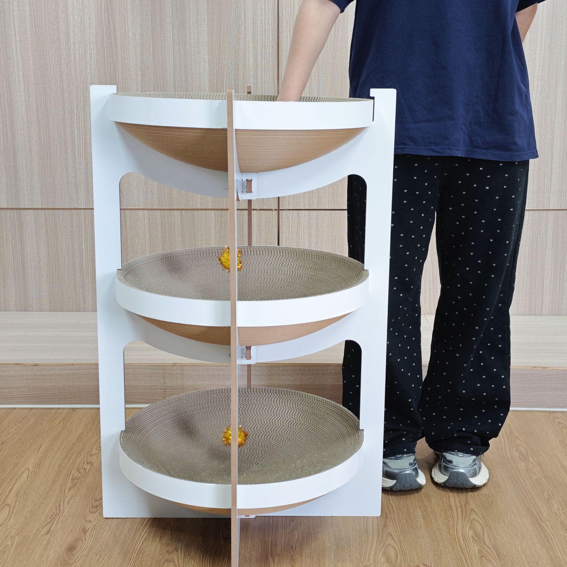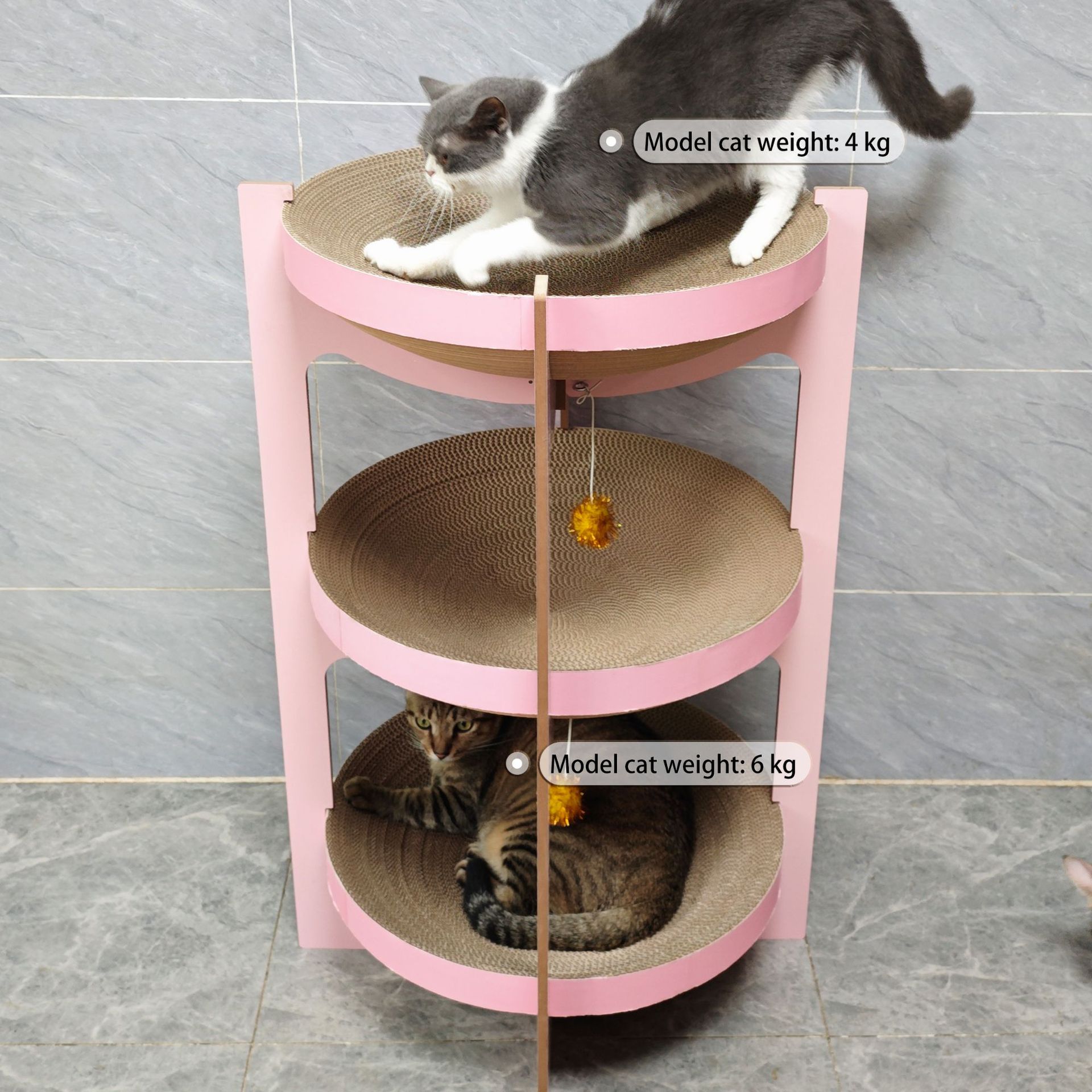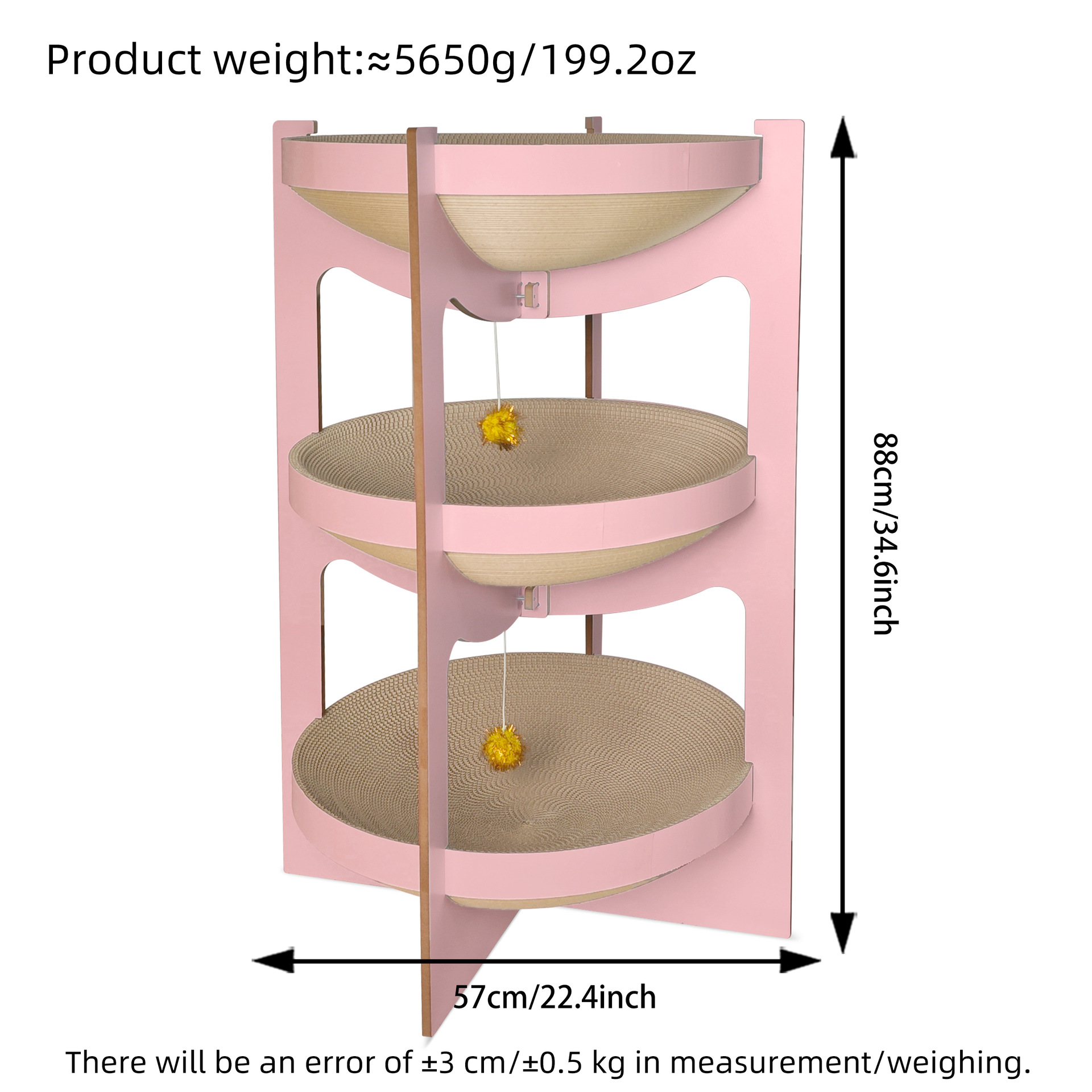 icle 공장 스팟 나무 고양이 랙 골판지 고양이 발톱 보드 교체 가능 크로스보더 접이식 3층 50 직경 핑크
