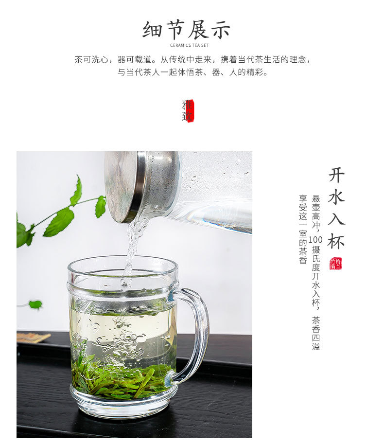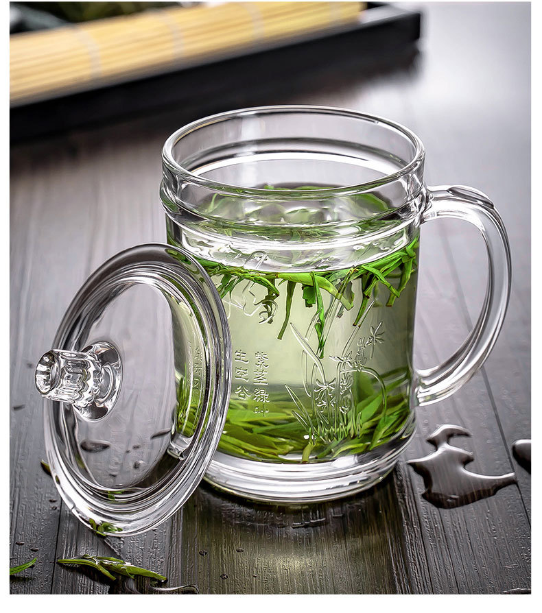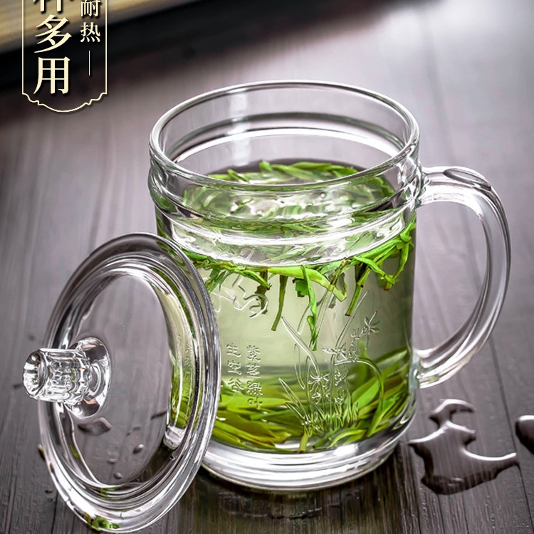 손잡이가 있는 가정용 고온 방지 유리 컵, 뚜껑이 있는 대용량 컵, 남성용 차 만들기, 투명한 찻잔, 물컵 없음