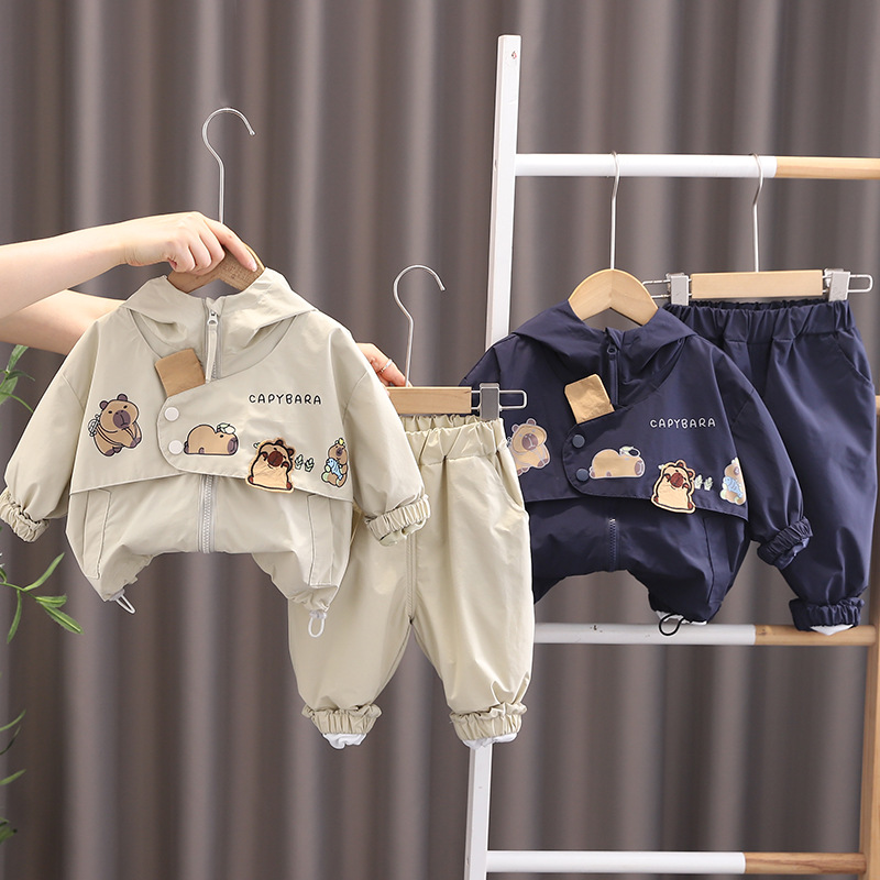 어린이 가을 정장 2025 새로운 스타일의 소년과 소녀 패션 만화 캐주얼 어린이 후드 투피스 가을 스타일