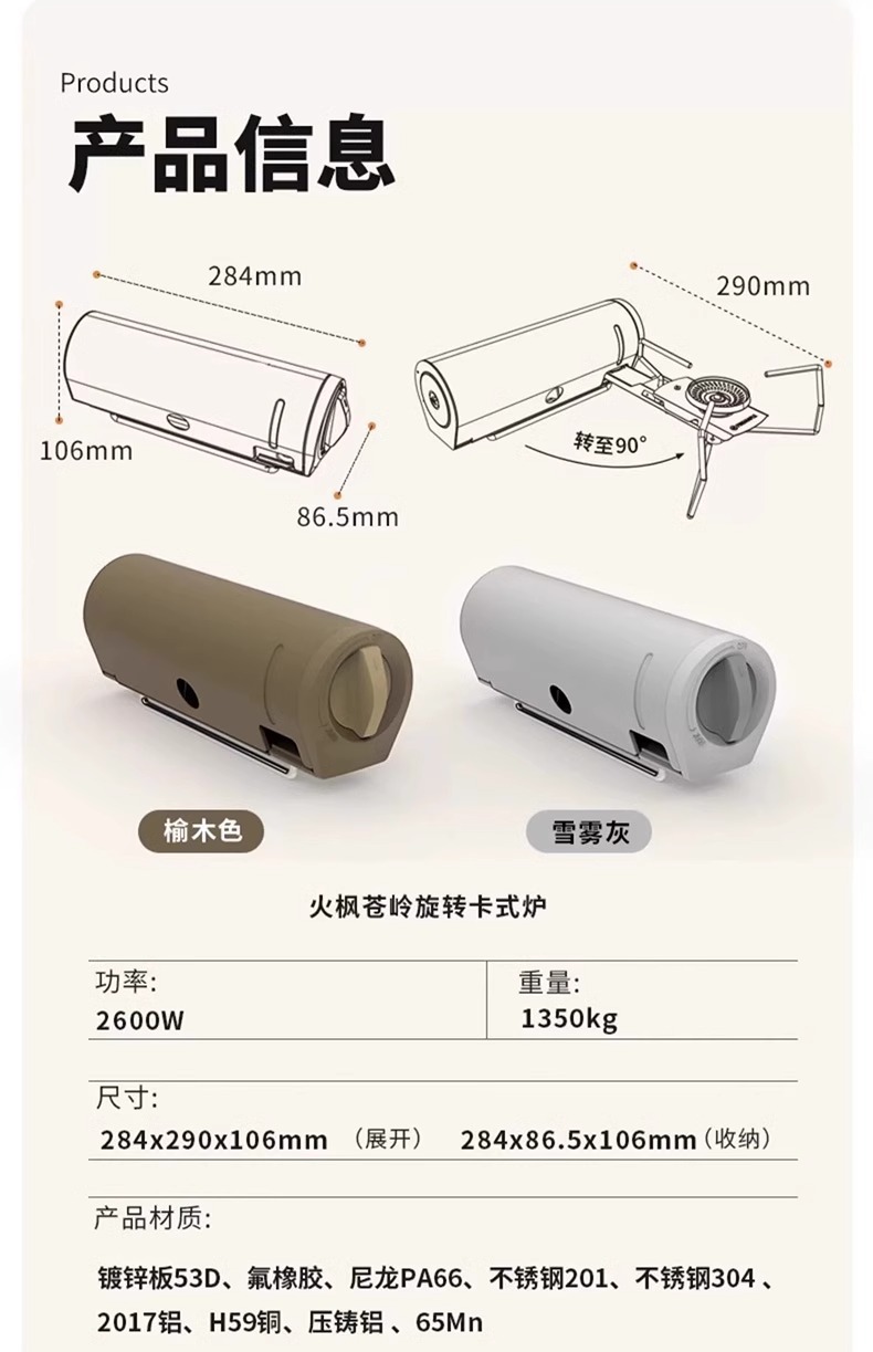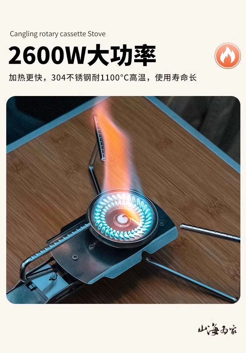 Huofeng Cangling 회전 카세트 스토브 가스 탱크 가스 스토브 2600W 야외 휴대용 스토브 야외 캠핑 장비