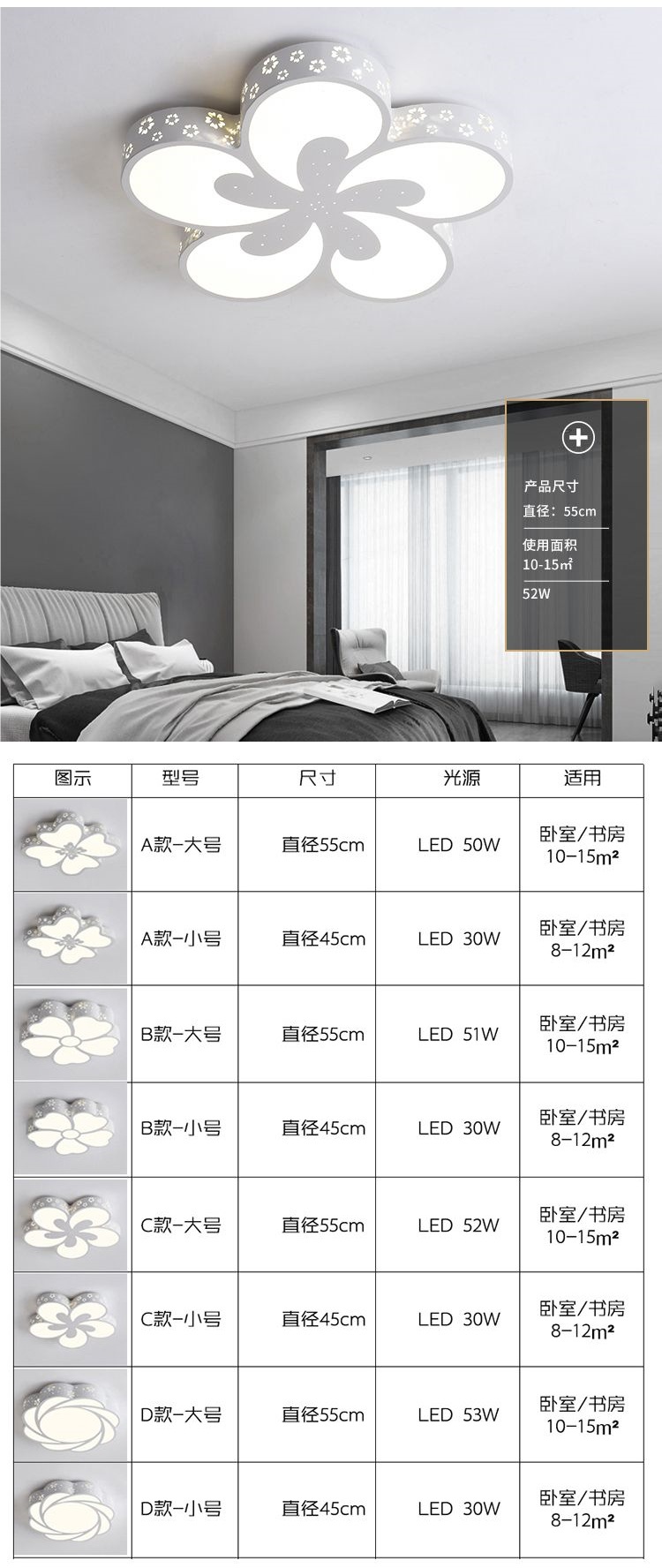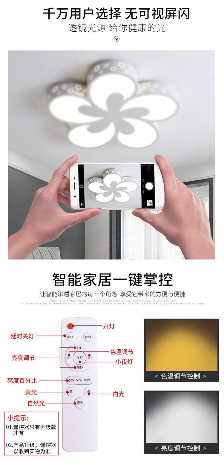 새로운 침실 천장 조명 인터넷 연예인 따뜻하고 낭만적 인 침실 꽃잎 램프 현대 간단한 꽃 모양의 원격 제어 램프스토어 가기