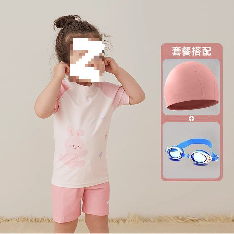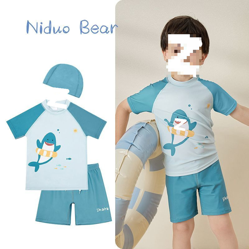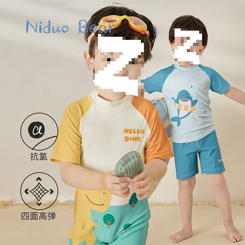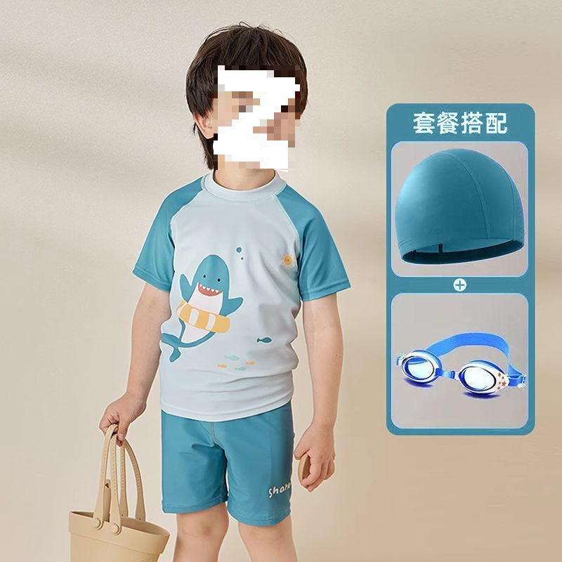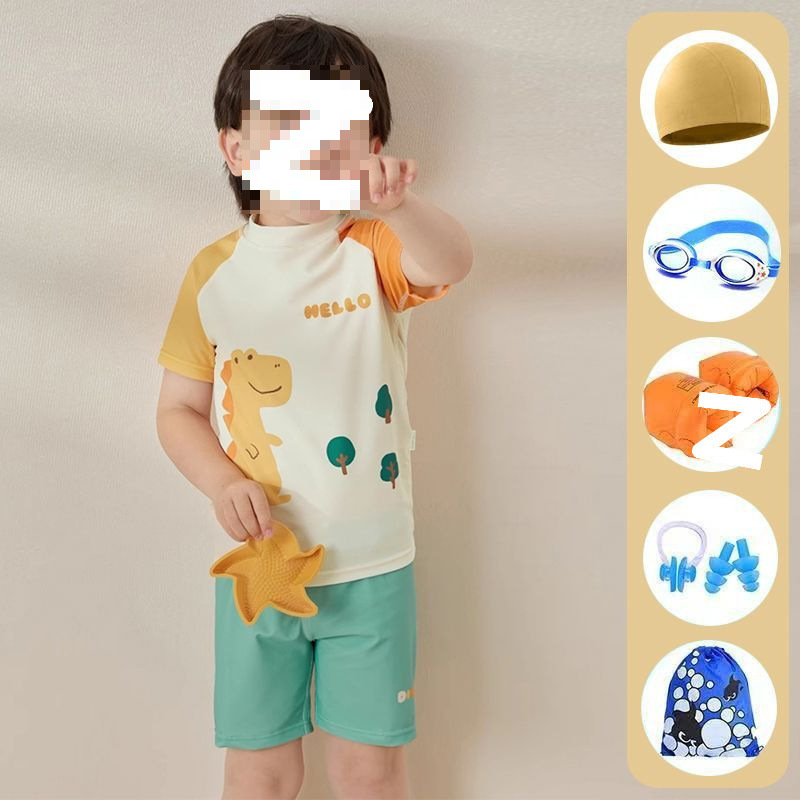 어린이 수영복 소년 소형, 중형 및 대형 어린이 2025 새로운 스플릿 수영복 귀여운 아기 속건성 수영복