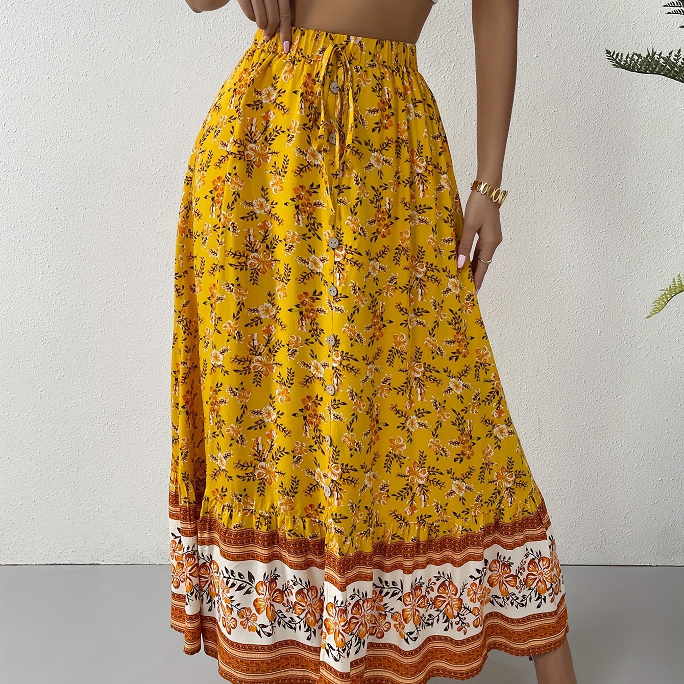 2025년 새로운 크로스보더 유럽 및 미국 여성용 하이웨이스트 플라워 미니 스커트(드로스트링 디자인 포함)스토어 가기