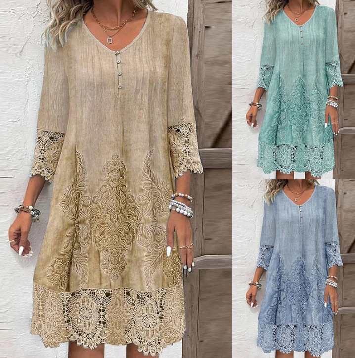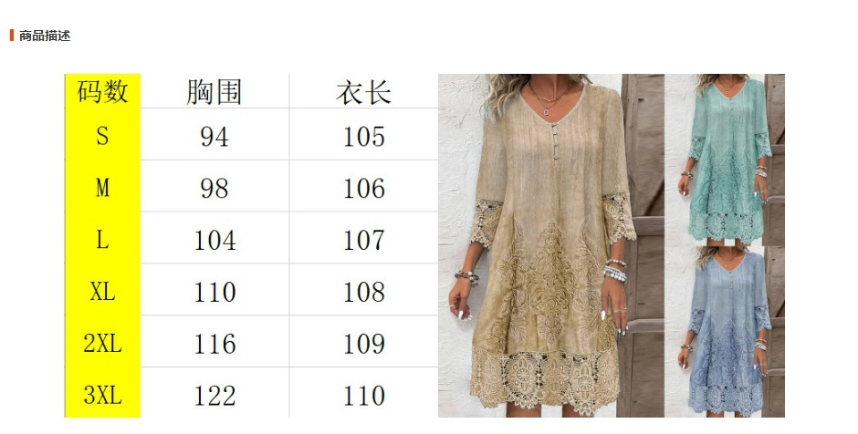 재고 있음 Amazon Temu 크로스보더 유럽 및 미국 의류 2025 새로운 봄 여름 인기 솔리드 컬러 레이스 드레스스토어 가기