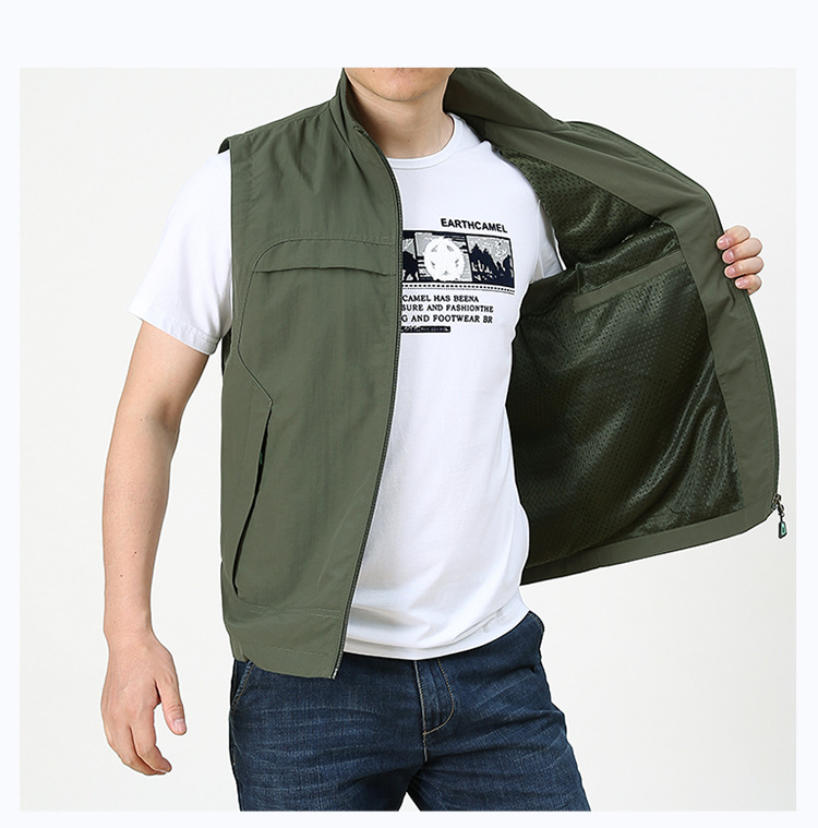 국경 간 대외 무역 조끼 가을, 겨울 새로운 남성 코트 야외 캐주얼 스탠드 칼라 조끼 등산 낚시 사진 조끼