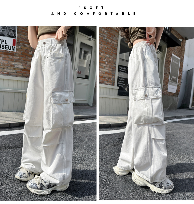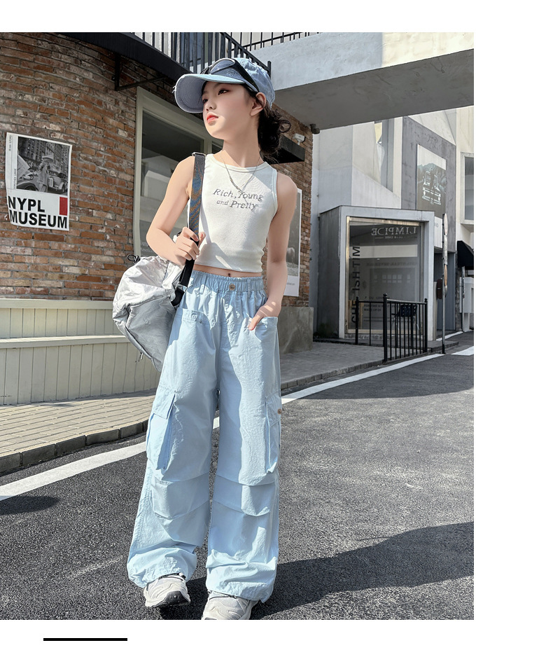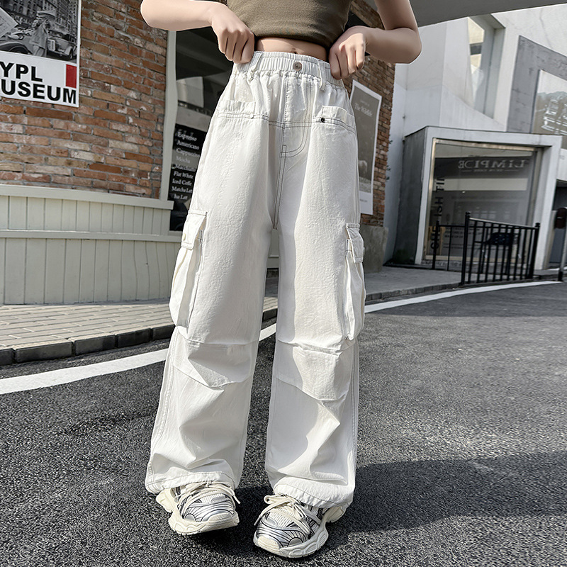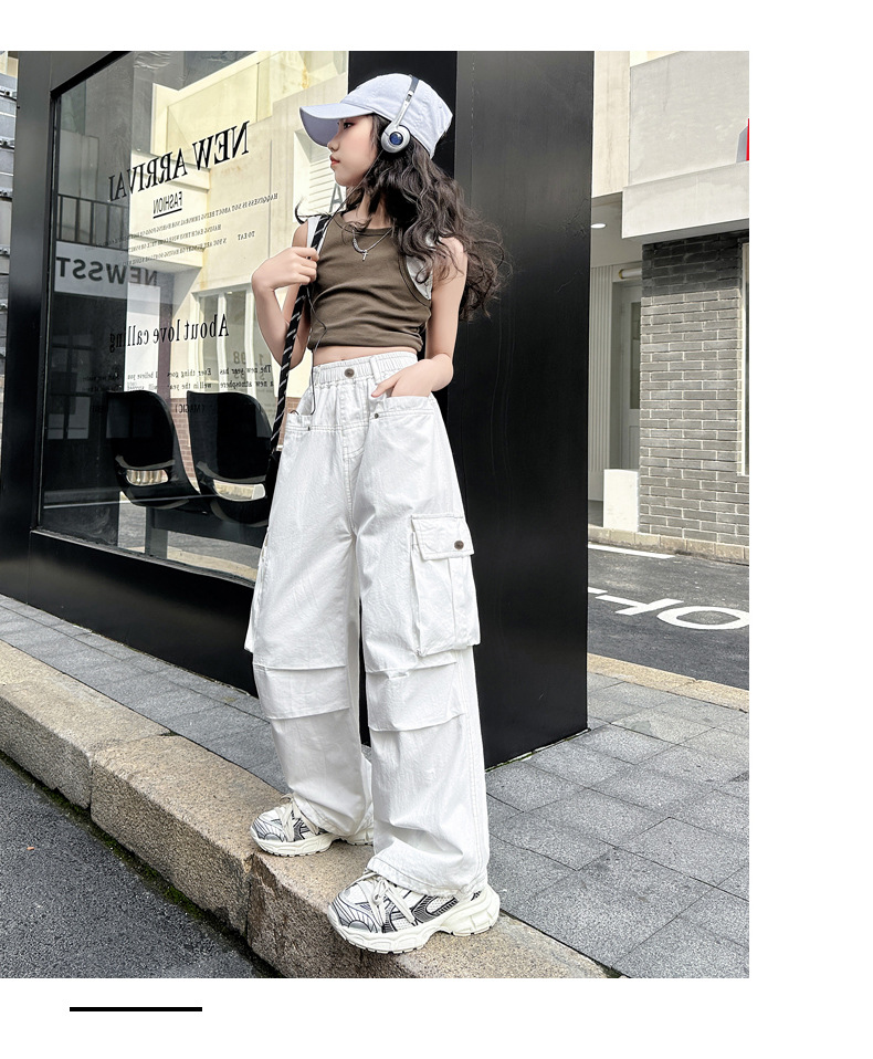 여아 작업복 여름 2025 새로운 인기 여아 중대형 아동용 멋진 와이드 팬츠 단색 여름 얇은 바지스토어 가기