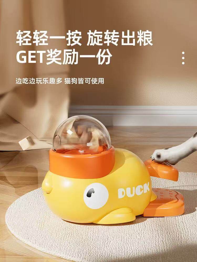 작은 노란색 오리 동결 건조 발사기 고양이 장난감 애완 동물 교육용 먹이 흘리기 장치 수조 및 기타 수족관 장비 피더스토어 가기