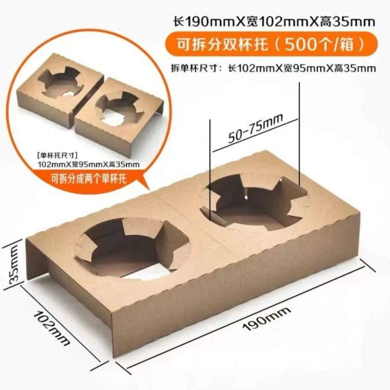 • 3.5 비분리형 더블 컵 홀더, 상자당 500개, 컵 바닥 크기 53-71에 적합