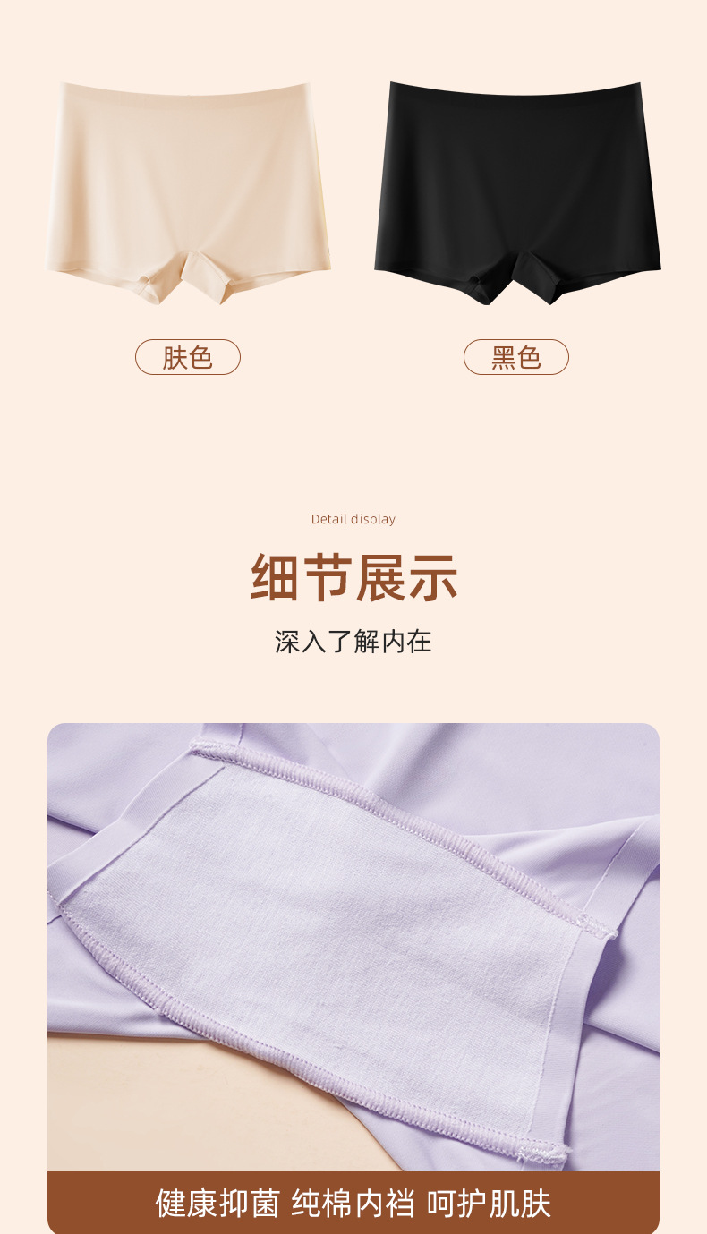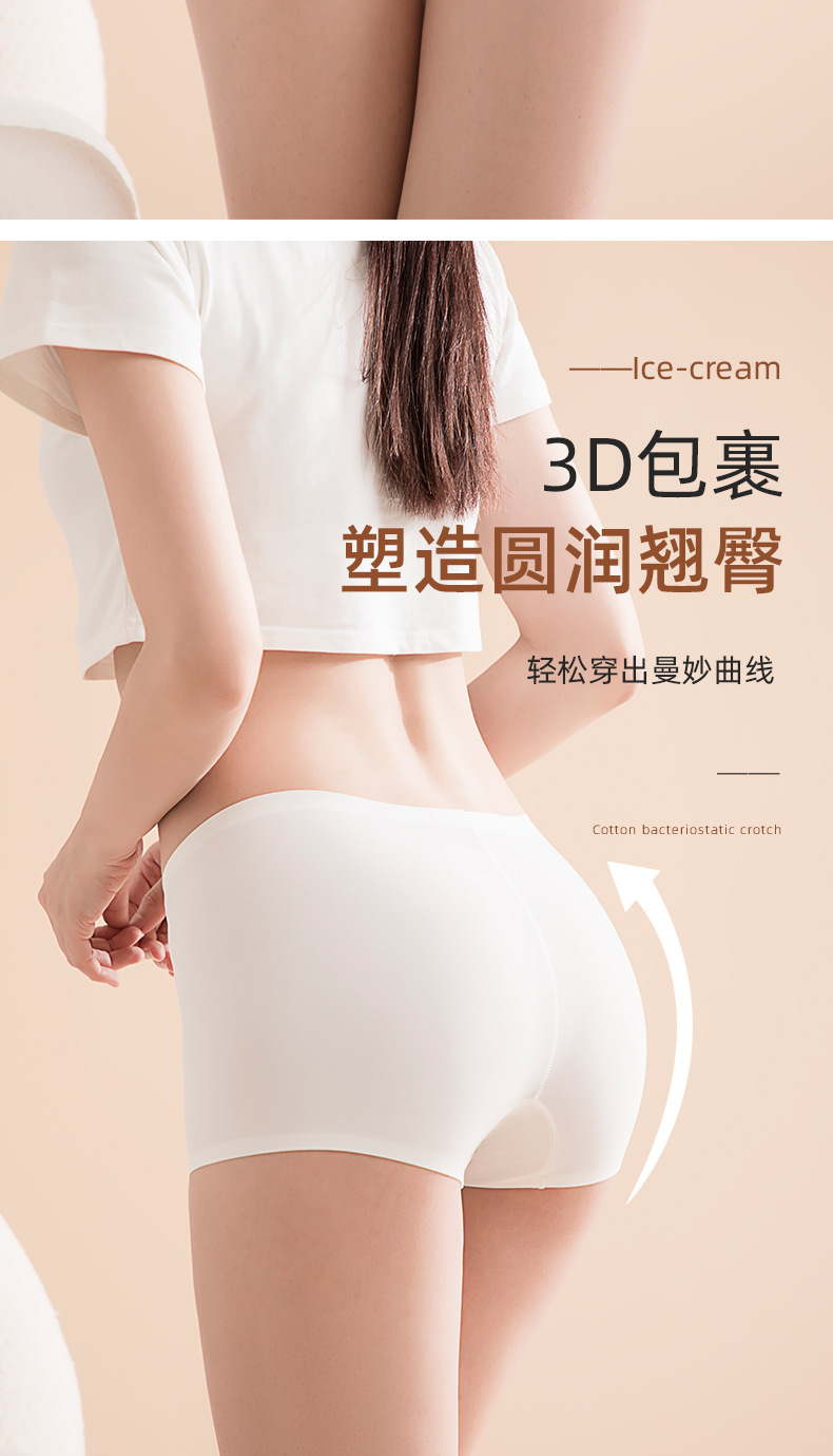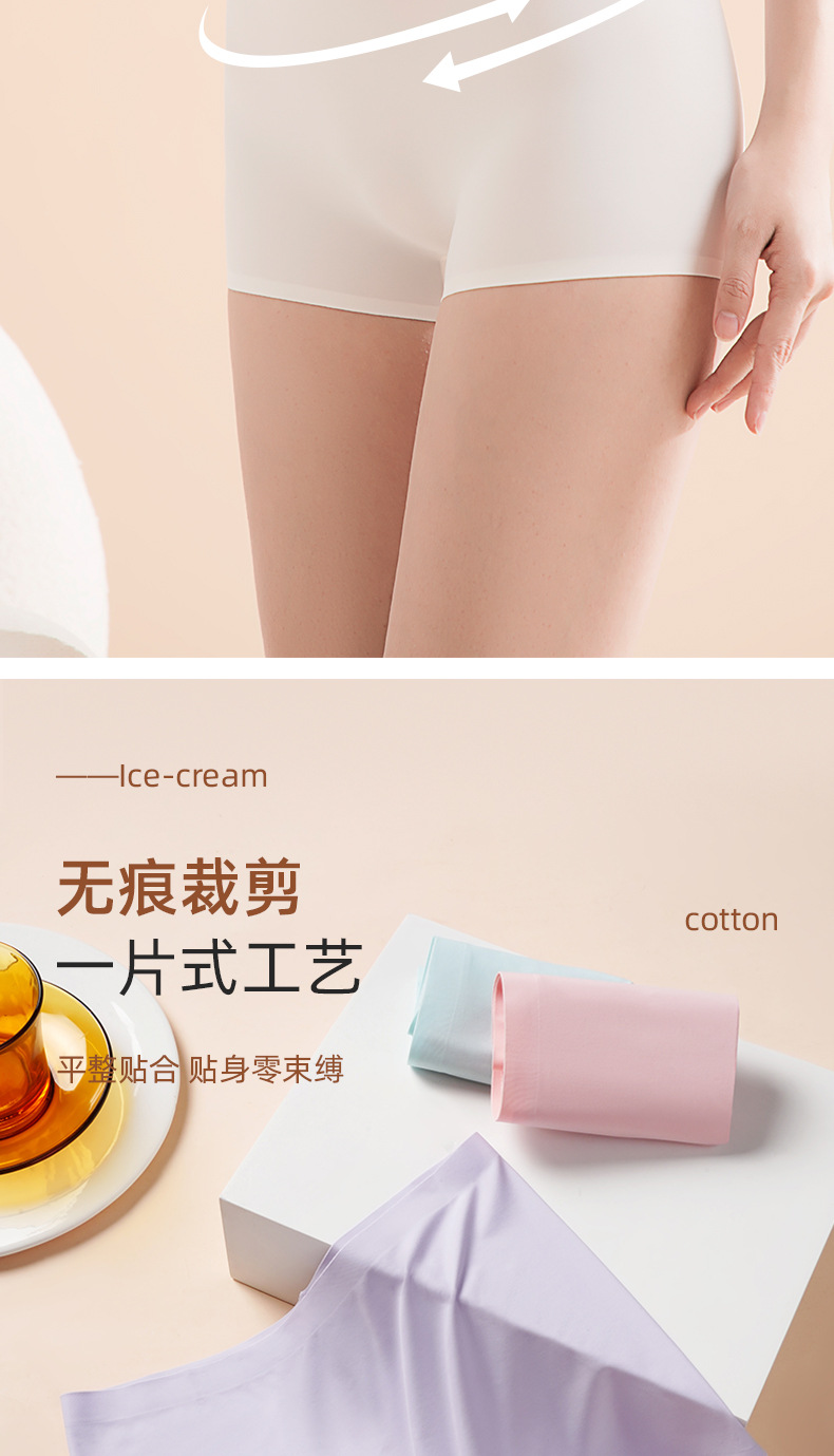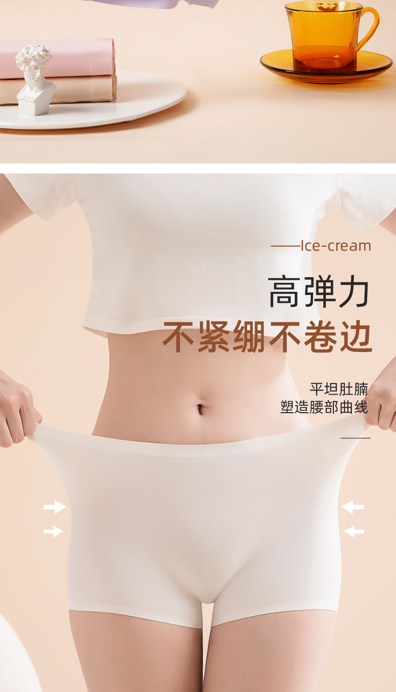 아이스 실크 안전팬츠, 노출방지, 심리스, 미드웨이스트, 순면, 항균, 바닥가랑이, 엉덩이 안티클램핑, 여성용 3점 사각팬티스토어 가기