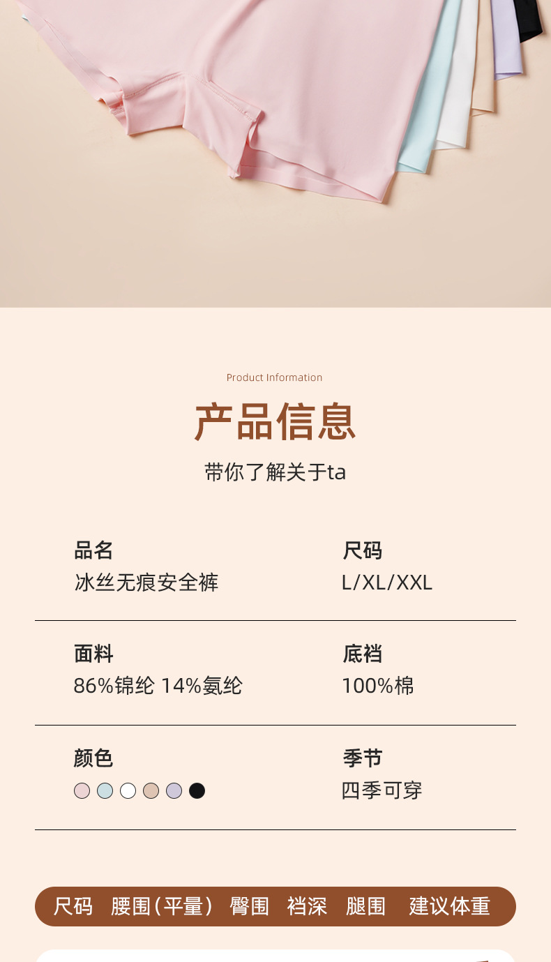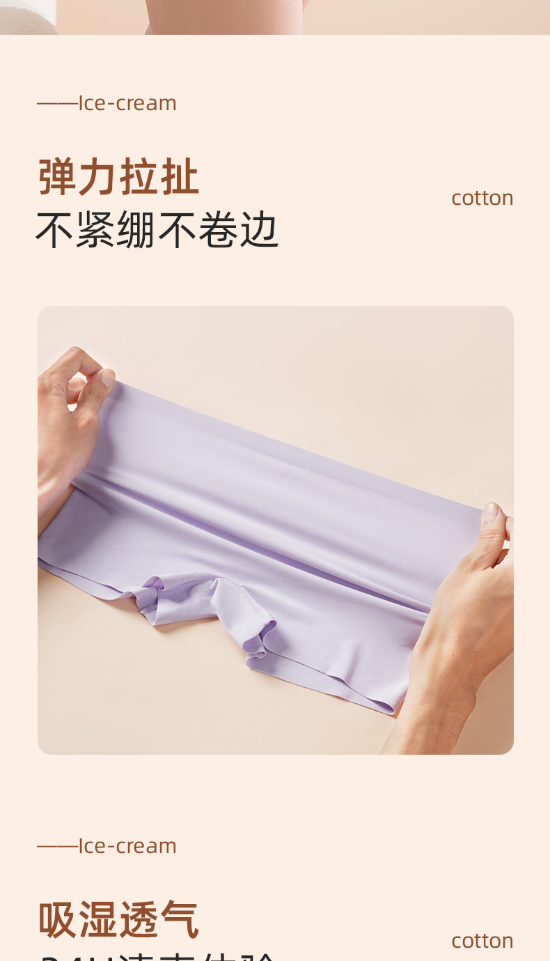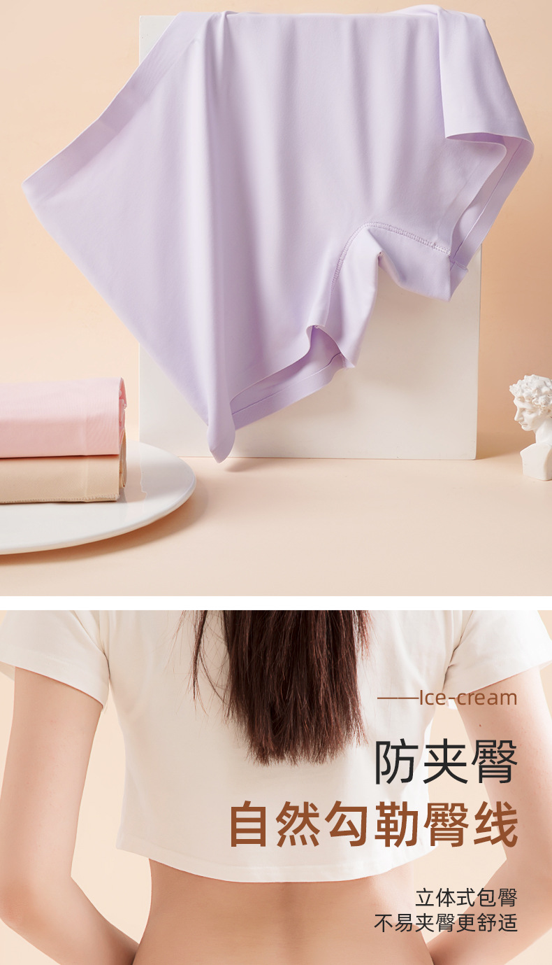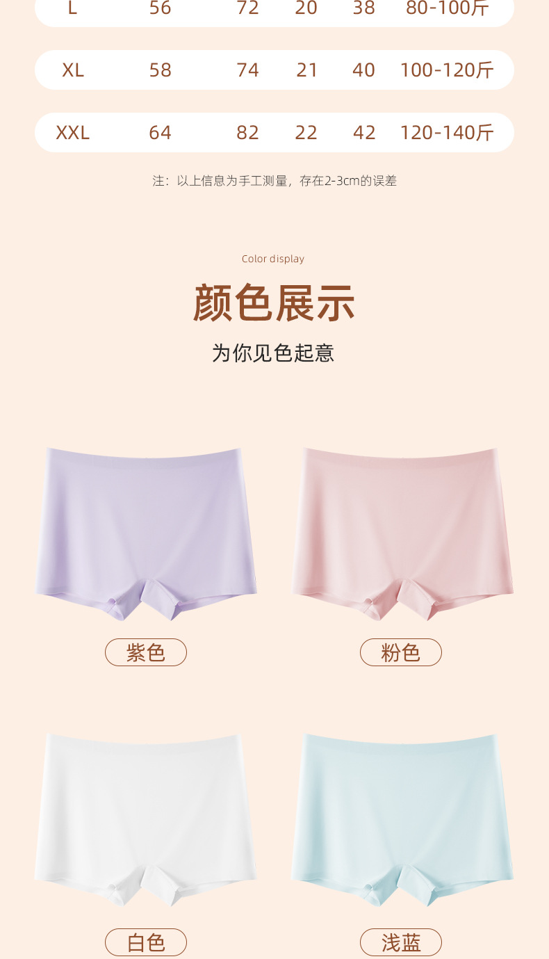 아이스 실크 안전팬츠, 노출방지, 심리스, 미드웨이스트, 순면, 항균, 바닥가랑이, 엉덩이 안티클램핑, 여성용 3점 사각팬티스토어 가기