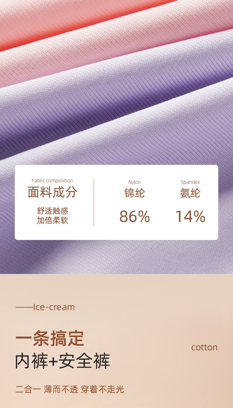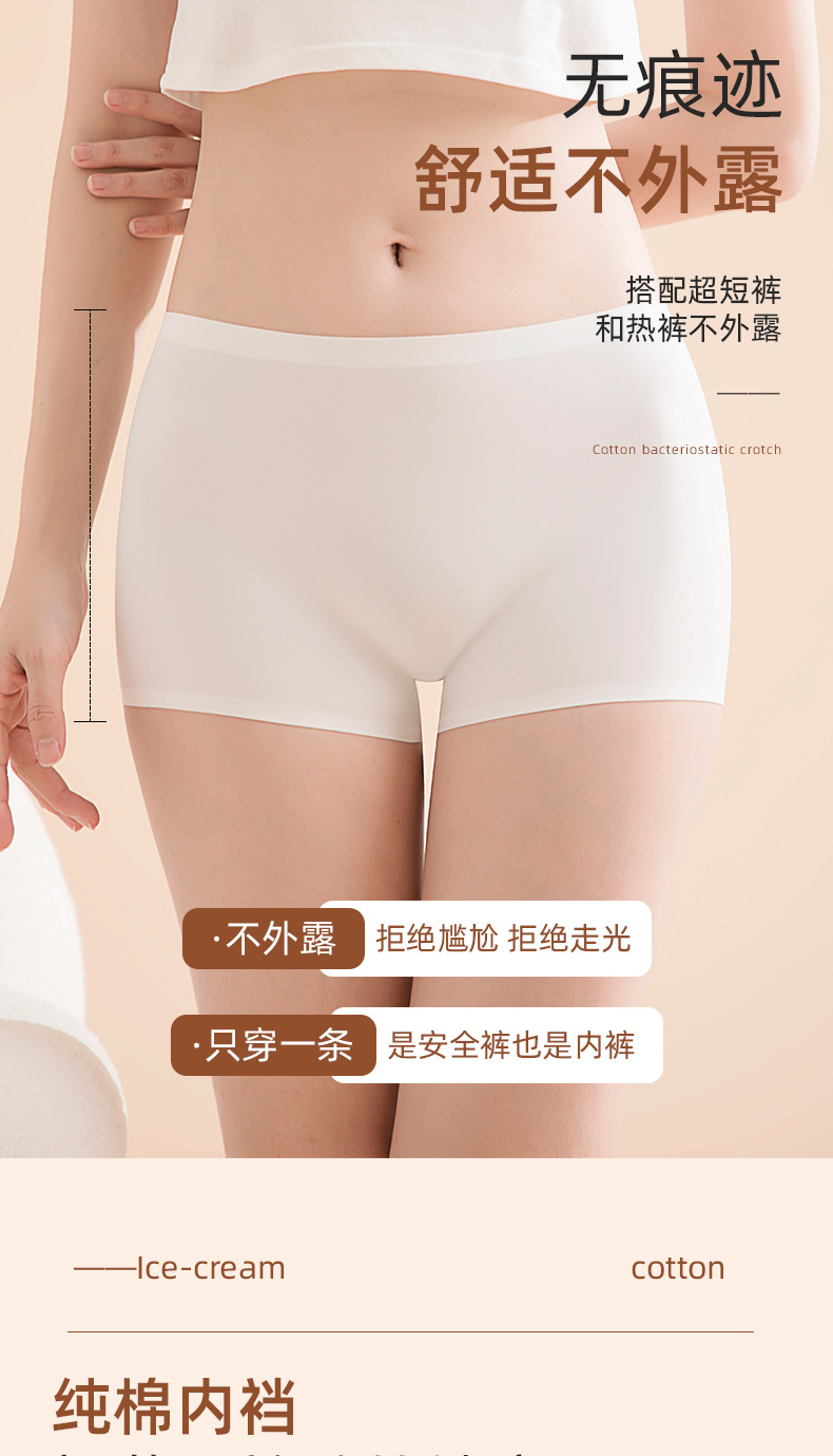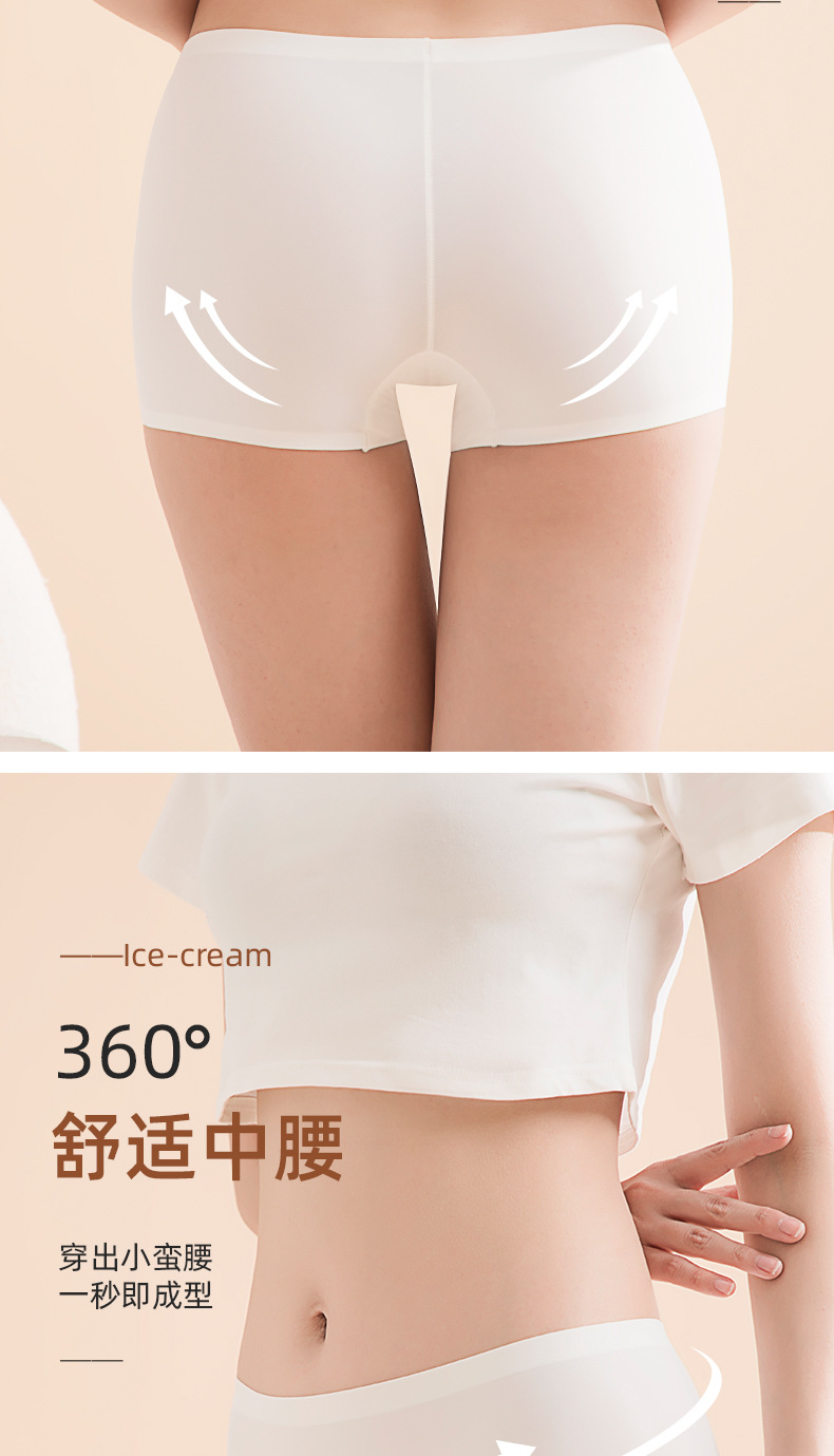 아이스 실크 안전팬츠, 노출방지, 심리스, 미드웨이스트, 순면, 항균, 바닥가랑이, 엉덩이 안티클램핑, 여성용 3점 사각팬티