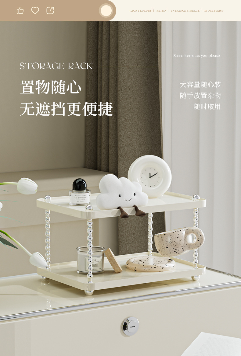 데스크탑 스토리지 랙, 가벼운 고급 더블 레이어 스토리지 랙, 두꺼운 조합 조리대 잔해물 정리 랙, 입구 스토리지 랙