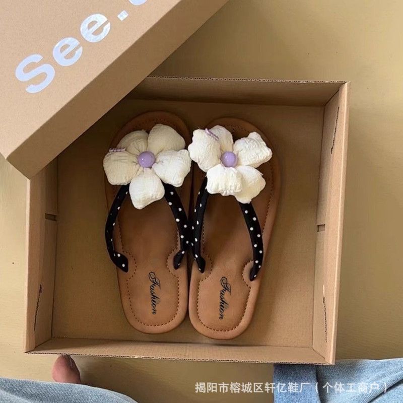 2025 인터넷 연예인 소녀 인스 꽃 인기 폭발 플랫 바닥 편안한 겉옷 미끄럼 방지, 냄새 방지, 내구성 및 내마모성 슬리퍼스토어 가기