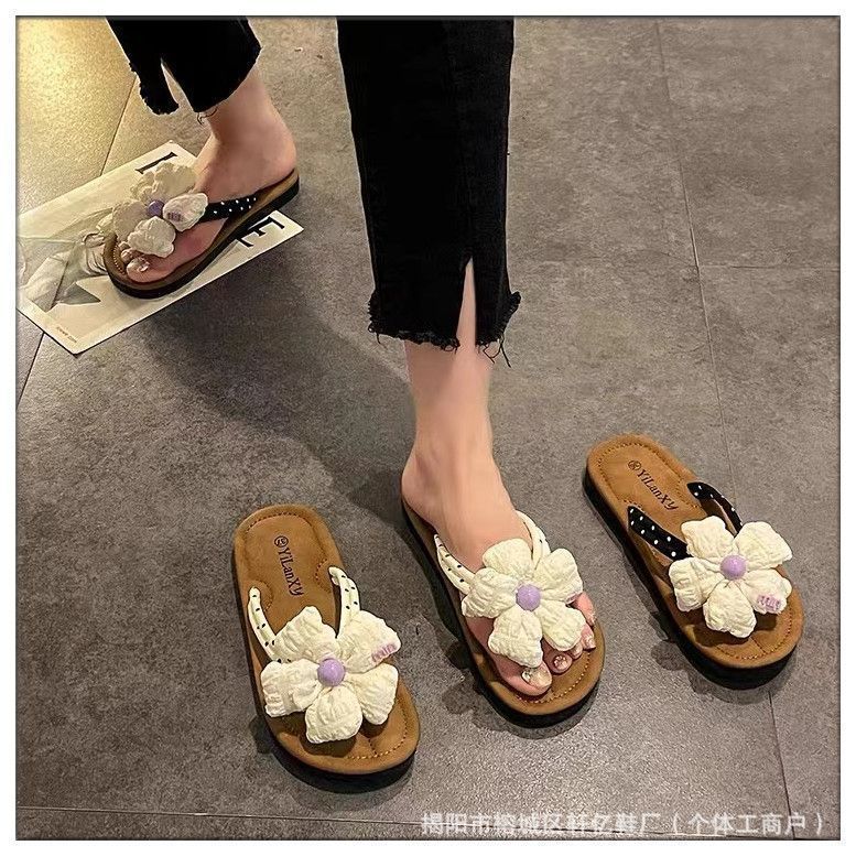 2025 인터넷 연예인 소녀 인스 꽃 인기 폭발 플랫 바닥 편안한 겉옷 미끄럼 방지, 냄새 방지, 내구성 및 내마모성 슬리퍼